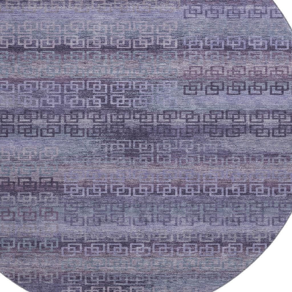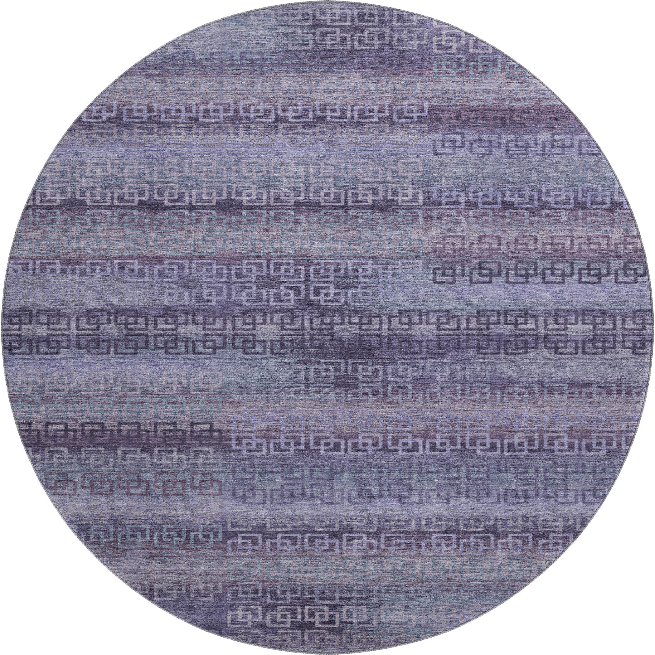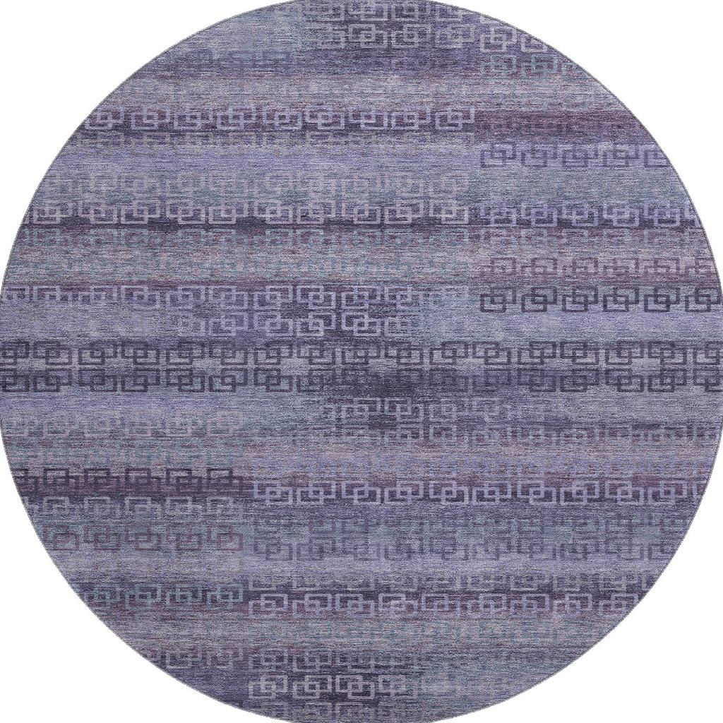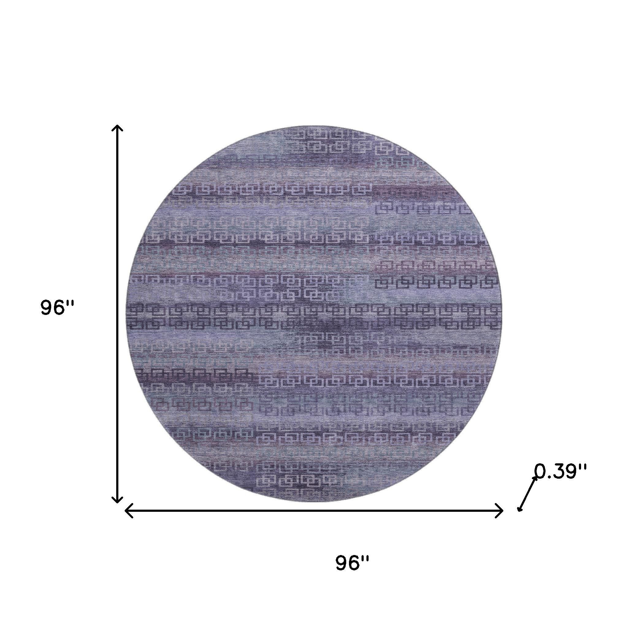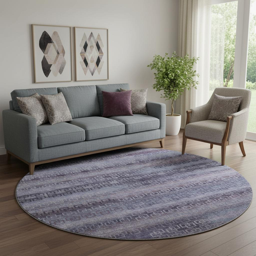 Add some artistry to your room with this 8-foot plum and purple striped washable round rug with uv protection. Ideal for spaces with kids and pets, this rug is stain resistant to help repel dirt and spilled liquids. Built to last, this rug crafted from polyester fibers is known for its durability and long lasting appeal. Rugs are a great way to showcase your style, hide imperfections, warm your home and reduce noise. This larger sized, transitional styled rug is ready to create a focal point or statement piece in your room. 96.00-inch h x 96.00-inch w x 0.39-inch d.