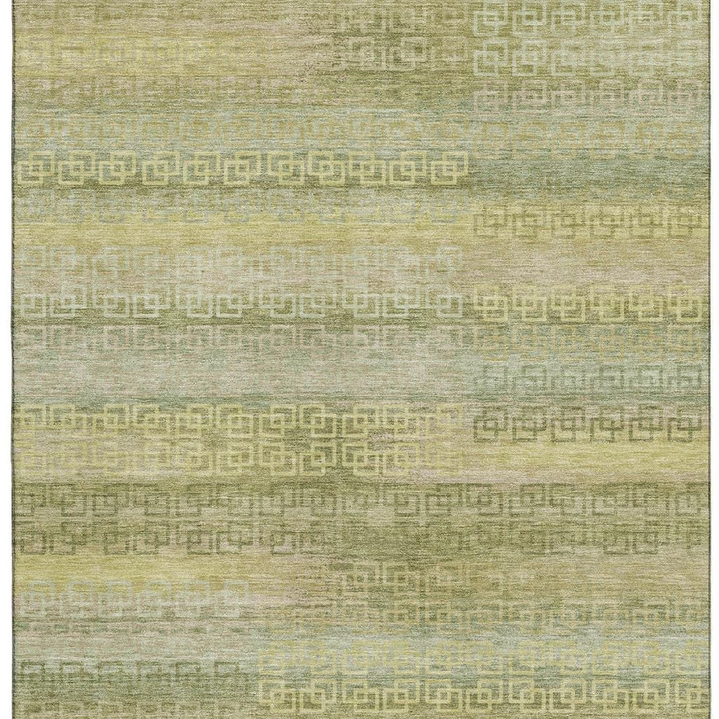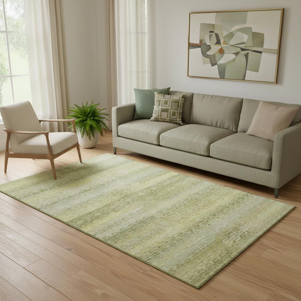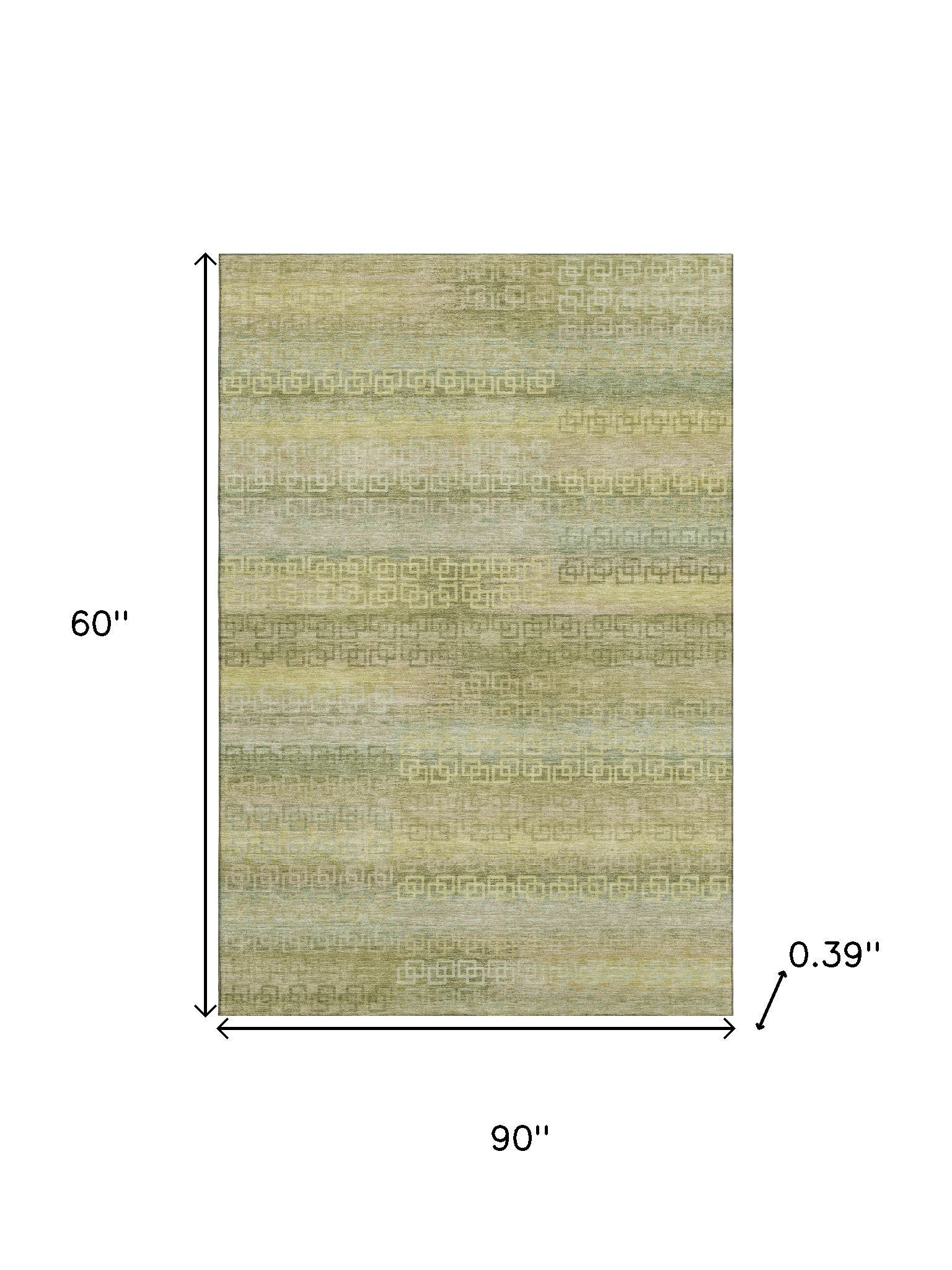 This 5-foot x 8-foot sage and gold striped washable area rug with uv protection, is a great way to add warmth to a room. Ideal for spaces with kids and pets, this rug is stain resistant to help repel dirt and spilled liquids. Built to last, this rug crafted from polyester fibers is known for its durability and long lasting appeal. Rugs are a great way to showcase your style, hide imperfections, warm your home and reduce noise. This larger sized, transitional styled rug is ready to create a focal point or statement piece in your room. 60.00-inch h x 90.00-inch w x 0.39-inch d.