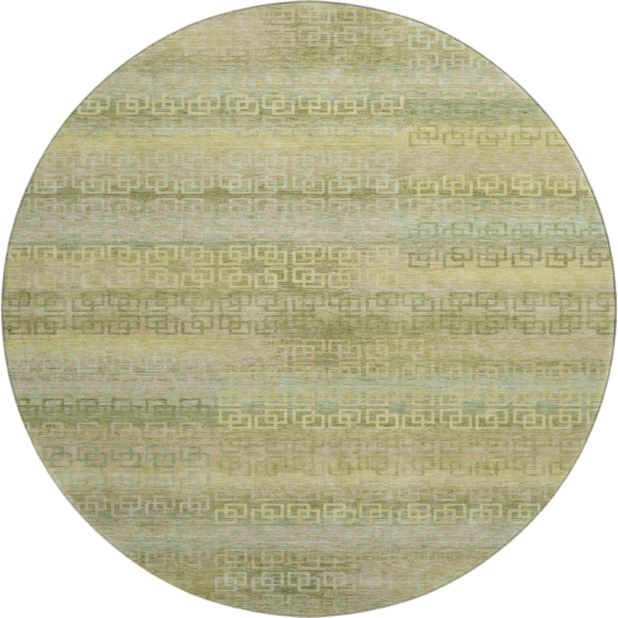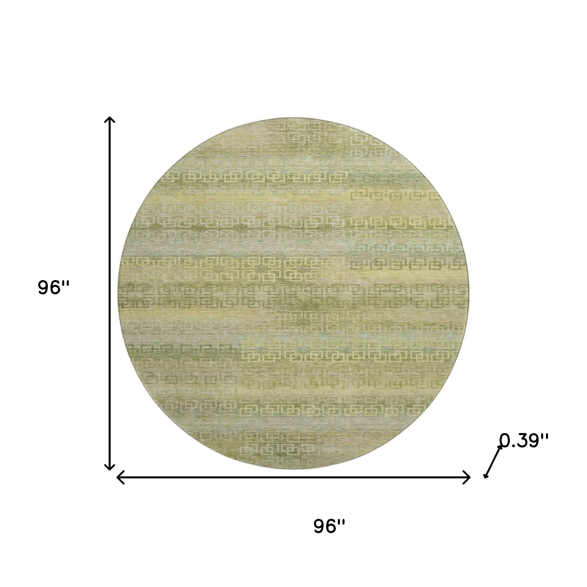 Add some artistry to your room with this 8-foot sage and gold striped washable round rug with uv protection. Ideal for spaces with kids and pets, this rug is stain resistant to help repel dirt and spilled liquids. Built to last, this rug crafted from polyester fibers is known for its durability and long lasting appeal. Rugs are a great way to showcase your style, hide imperfections, warm your home and reduce noise. This larger sized, transitional styled rug is ready to create a focal point or statement piece in your room. 96.00-inch h x 96.00-inch w x 0.39-inch d.