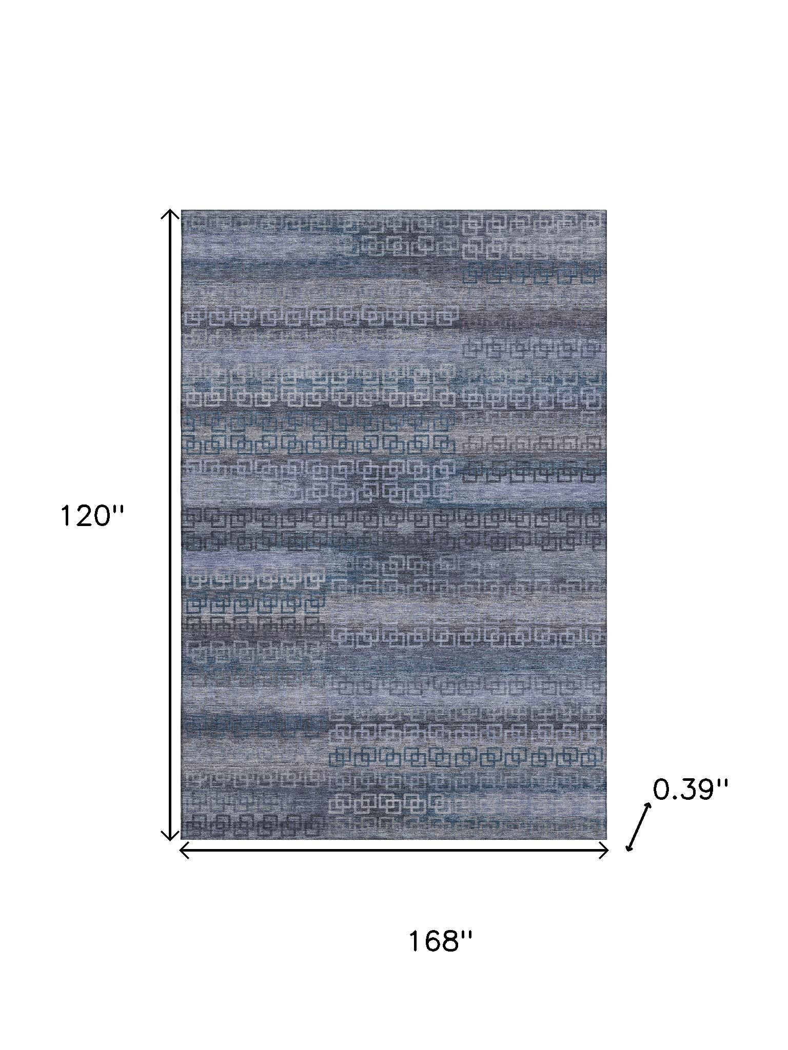 Set an inviting tone in your space with this 10-foot x 14-foot taupe and blue striped washable area rug with uv protection. Ideal for spaces with kids and pets, this rug is stain resistant to help repel dirt and spilled liquids. Built to last, this rug crafted from polyester fibers is known for its durability and long lasting appeal. Rugs are a great way to showcase your style, hide imperfections, warm your home and reduce noise. This larger sized, transitional styled rug is ready to create a focal point or statement piece in your room. 120.00-inch h x 168.00-inch w x 0.39-inch d.