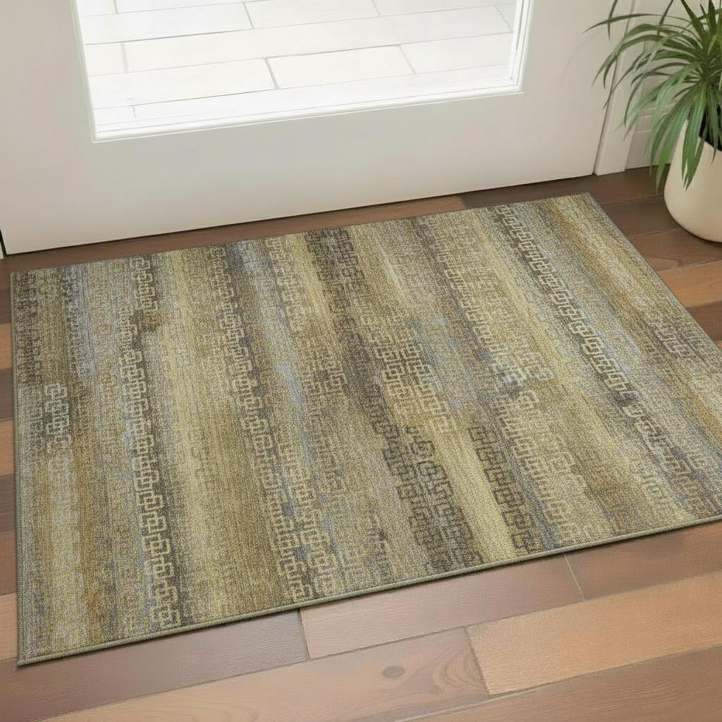 This 3-foot x 5-foot wheat and brown striped washable area rug with uv protection, is a great way to add warmth to a room. Ideal for spaces with kids and pets, this rug is stain resistant to help repel dirt and spilled liquids. Built to last, this rug crafted from polyester fibers is known for its durability and long lasting appeal. Rugs are a great way to showcase your style, hide imperfections, warm your home and reduce noise. This smaller sized, transitional styled rug is just what you need for your walkway, bedside, in front of door, cabinet, refrigerator, or chair. 36.00-inch h x 60.00-inch w x 0.39-inch d.