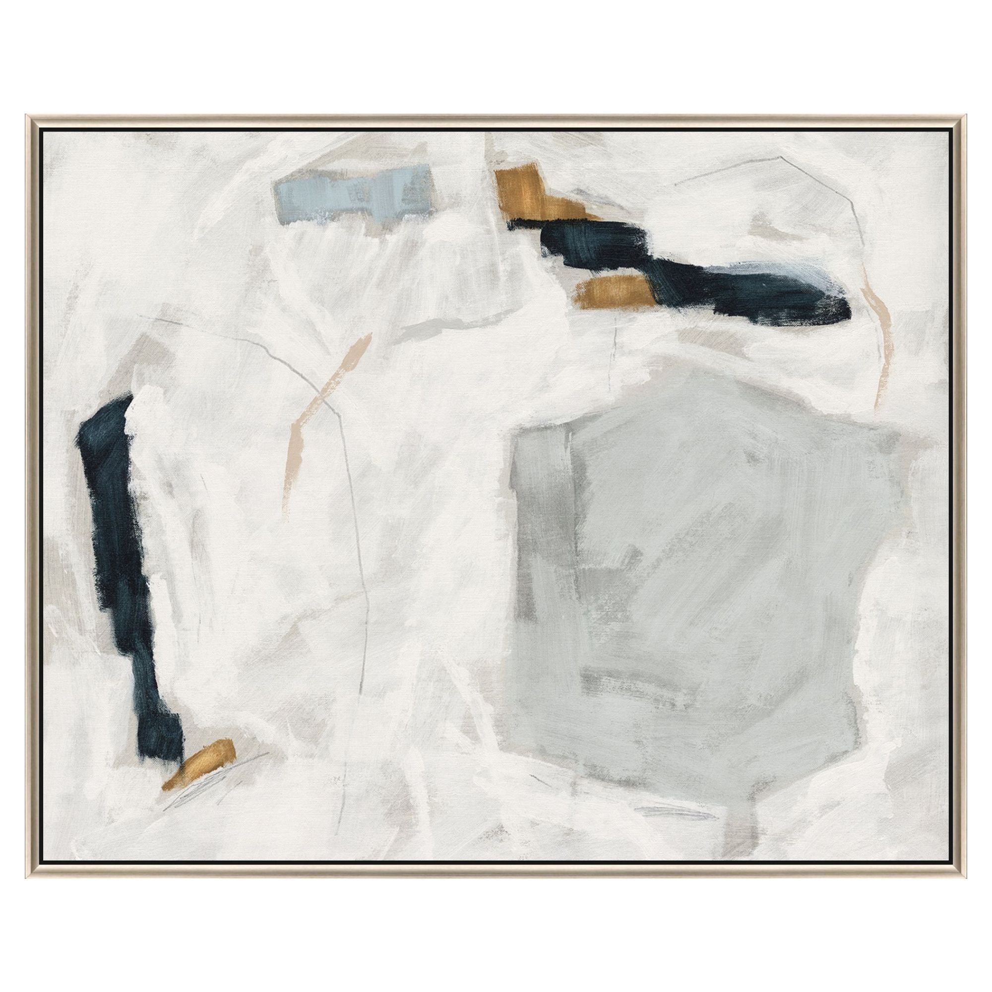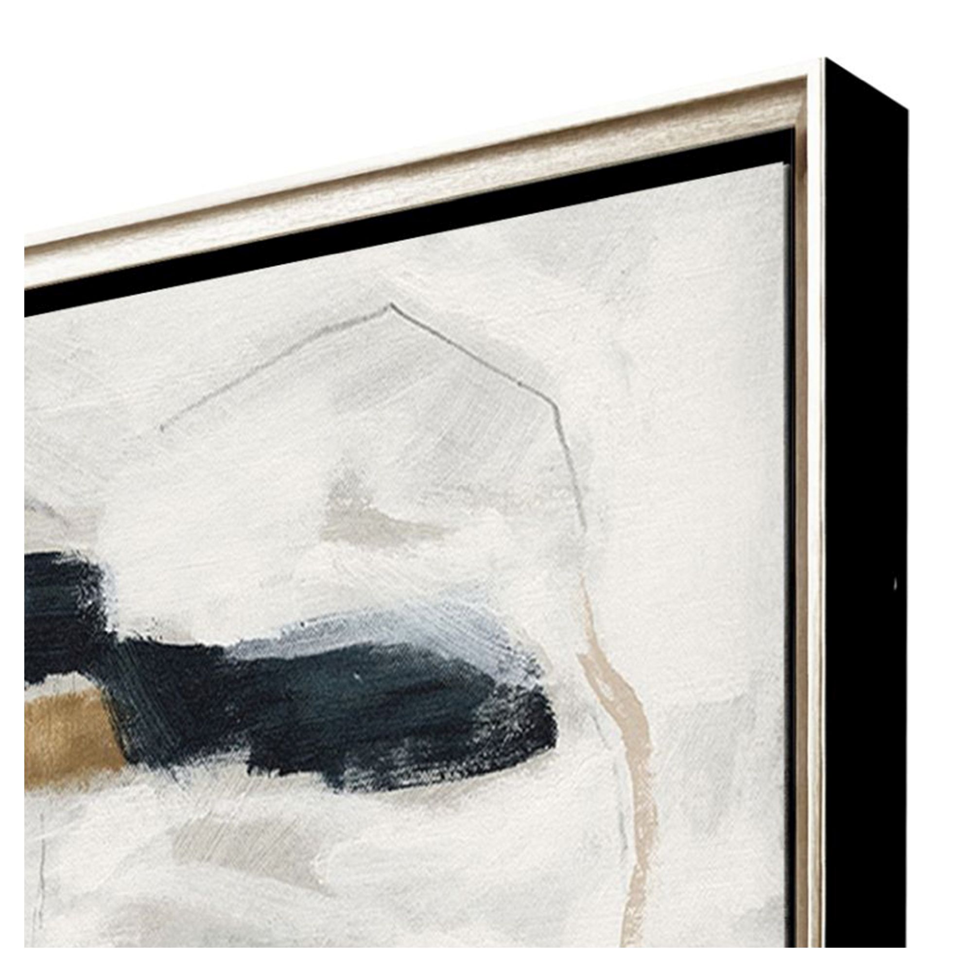Add an air of fashion to your room and rejuvenate the space with this abstract drift silver floater frame wall art. This block print is a way to express your artistic style and add some fashion to your walls. Reproduced for you on canvas, this hanging decorative accent will be a trendy and fashionable way to dress your walls. Adding this hanging wall art to your space to make your room feel more finished and attractive. Instantly liven up your space with this art that brings color and dimension to your walls. 34.00-inch h x 42.00-inch w x 3.00-inch d.