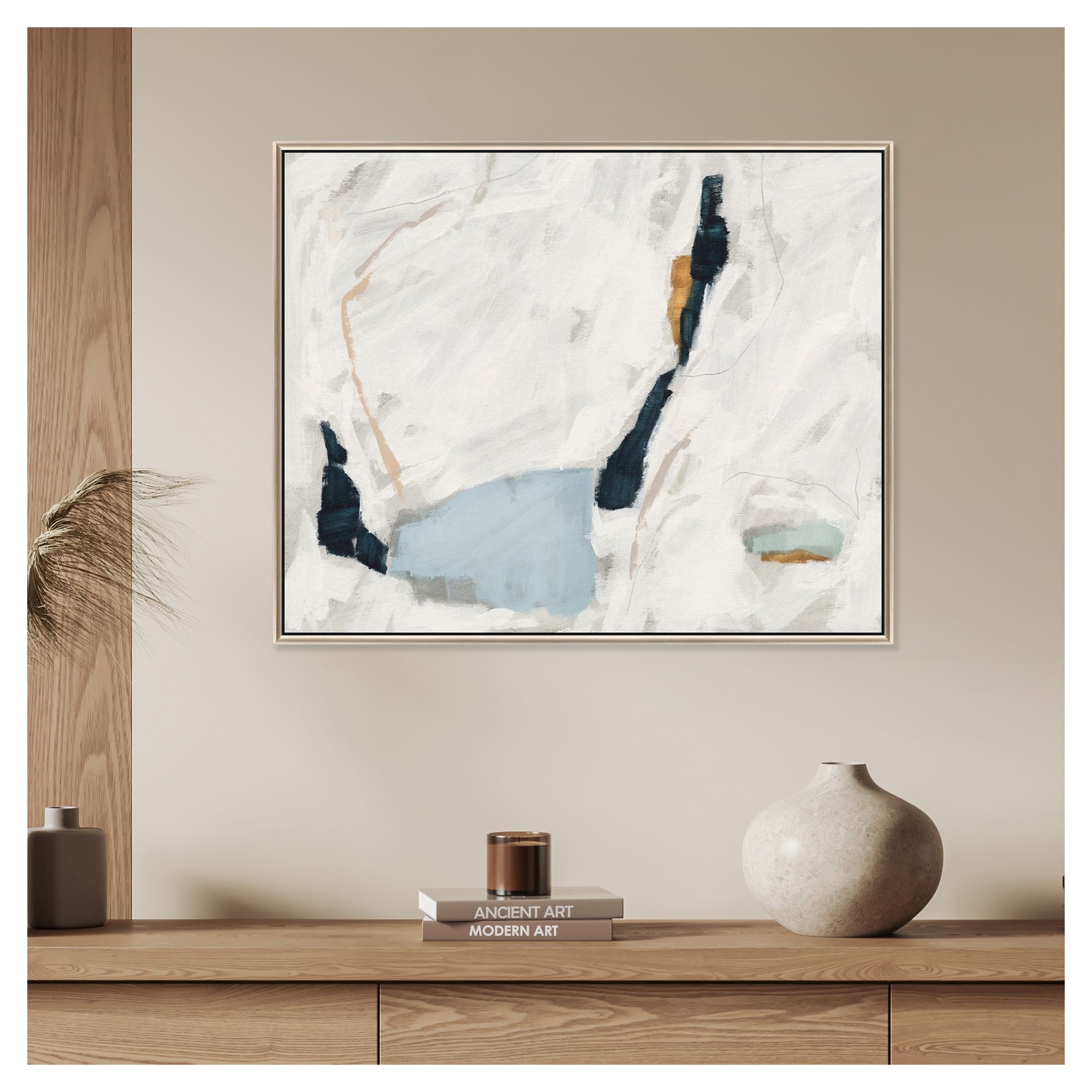 This abstract rush silver floater frame wall art will add a beautiful decorative accent to your decor. This block print is a way to express your artistic style and add some fashion to your walls. Reproduced for you on canvas, this hanging decorative accent will be a trendy and fashionable way to dress your walls. Hang on your wall to add some up to date fashion and decoration. Utilize this opportunity to create a focal point in the room with this fabulous wall decor option. 34.00-inch h x 42.00-inch w x 3.00-inch d.