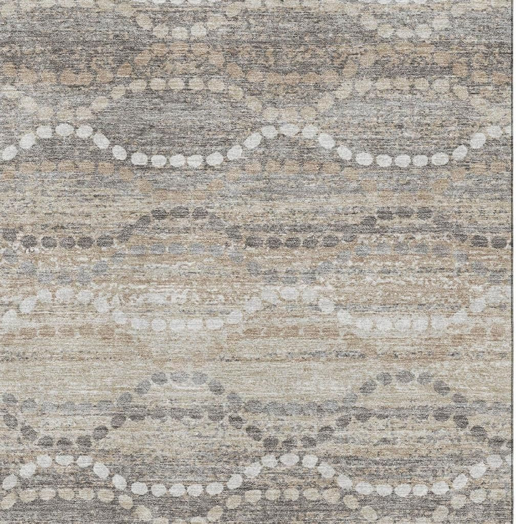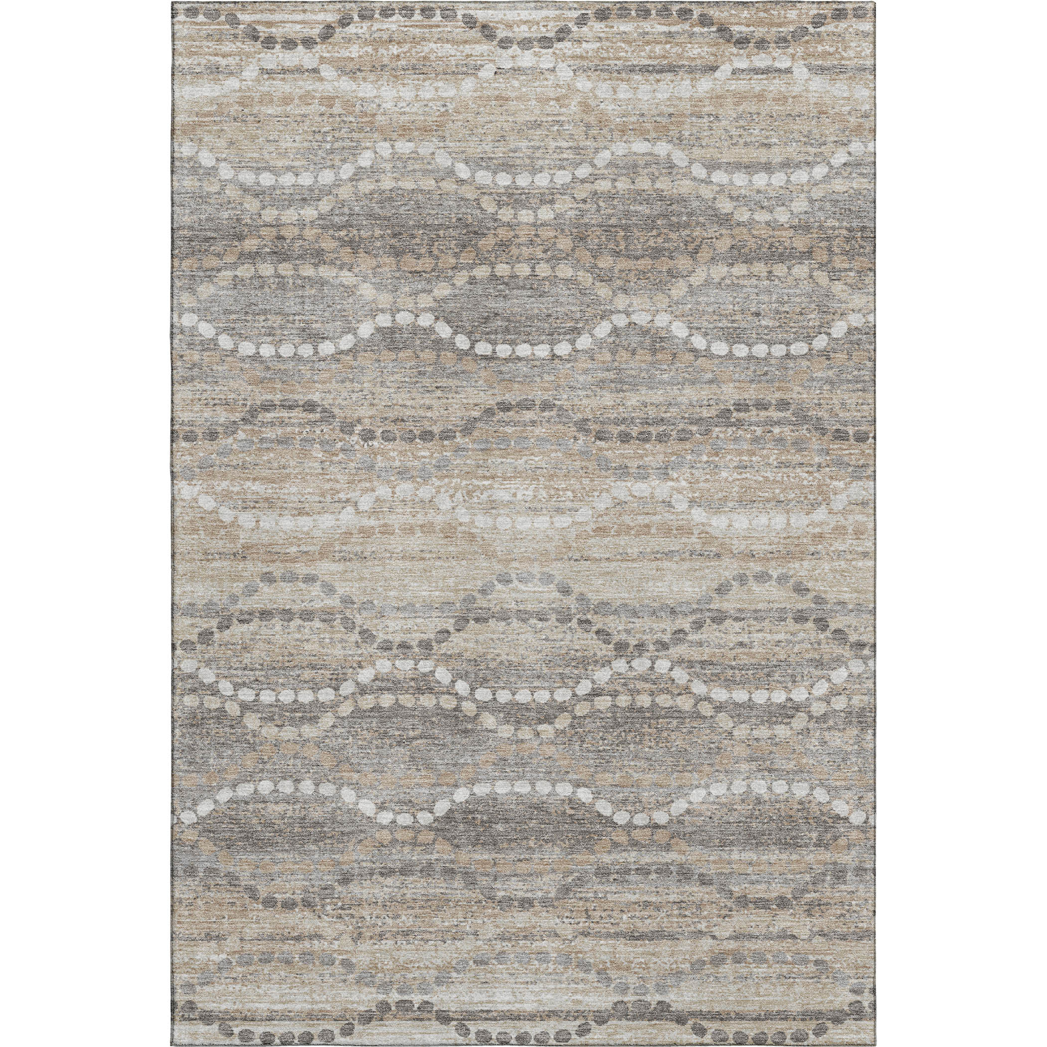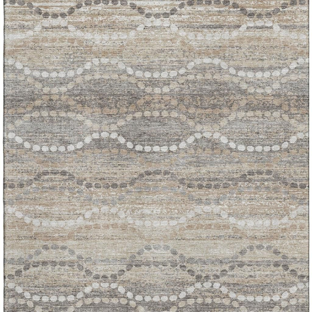 Add some artistry to your room with this 5-foot x 8-foot beige and ivory abstract geometric washable area rug with uv protection. Ideal for spaces with kids and pets, this rug is stain resistant to help repel dirt and spilled liquids. Built to last, this rug crafted from polyester fibers is known for its durability and long lasting appeal. Rugs are a great way to showcase your style, hide imperfections, warm your home and reduce noise. This larger sized, transitional styled rug is ready to create a focal point or statement piece in your room. 60.00-inch h x 90.00-inch w x 0.39-inch d.