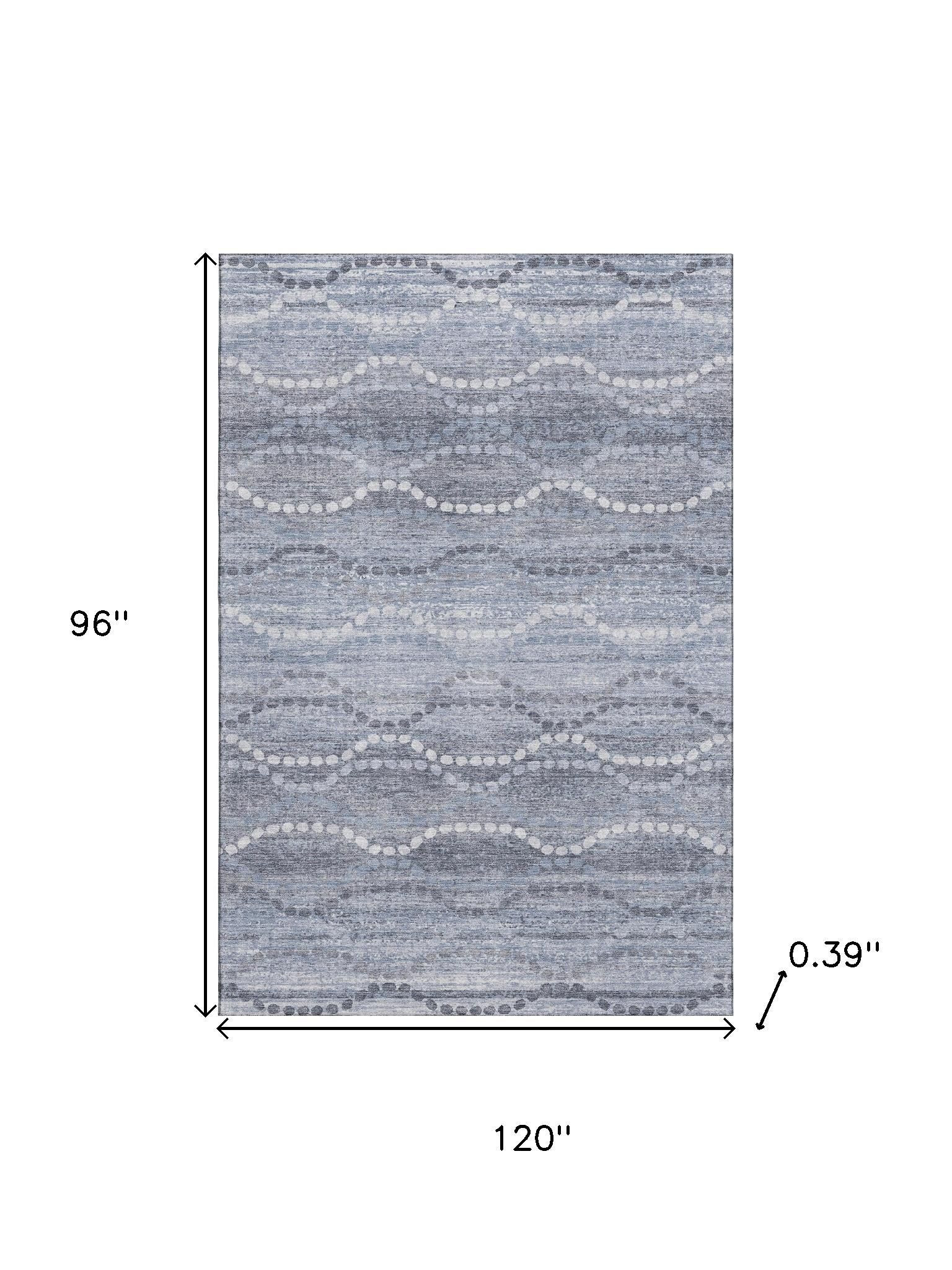 Add some artistry to your room with this 8-foot x 10-foot blue and ivory abstract geometric washable area rug with uv protection. Ideal for spaces with kids and pets, this rug is stain resistant to help repel dirt and spilled liquids. Built to last, this rug crafted from polyester fibers is known for its durability and long lasting appeal. Rugs are a great way to showcase your style, hide imperfections, warm your home and reduce noise. This larger sized, transitional styled rug is ready to create a focal point or statement piece in your room. 96.00-inch h x 120.00-inch w x 0.39-inch d.