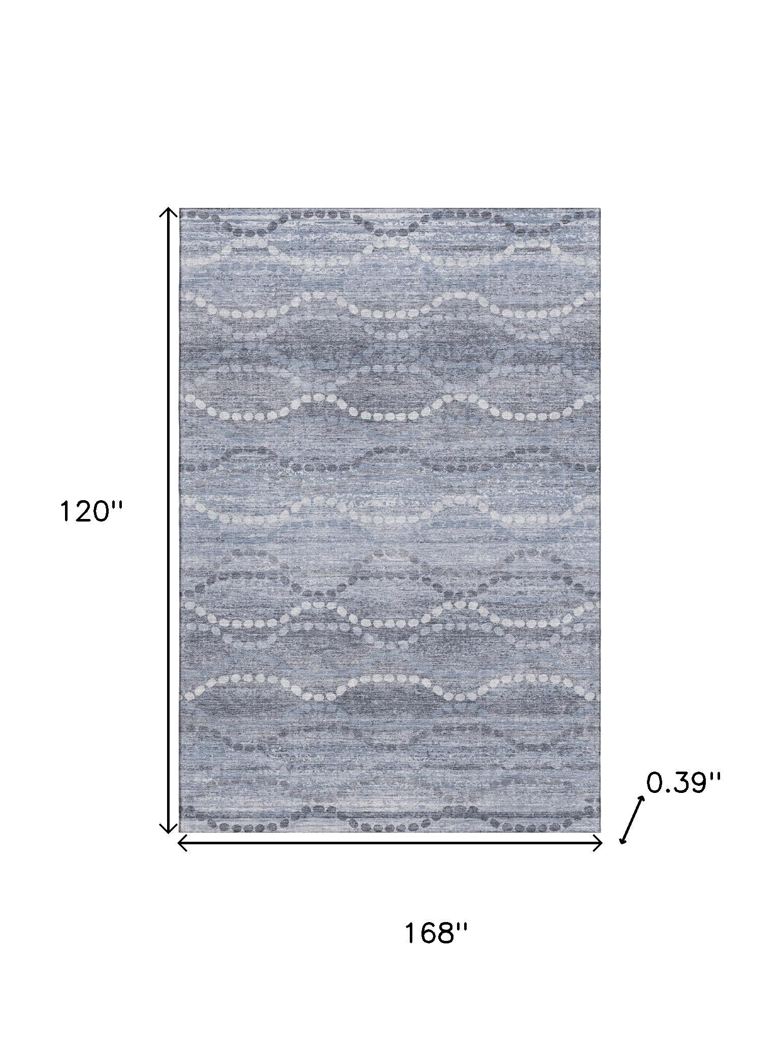 This 10-foot x 14-foot blue and ivory abstract geometric washable area rug with uv protection, is a great way to add warmth to a room. Ideal for spaces with kids and pets, this rug is stain resistant to help repel dirt and spilled liquids. Built to last, this rug crafted from polyester fibers is known for its durability and long lasting appeal. Rugs are a great way to showcase your style, hide imperfections, warm your home and reduce noise. This larger sized, transitional styled rug is ready to create a focal point or statement piece in your room. 120.00-inch h x 168.00-inch w x 0.39-inch d.