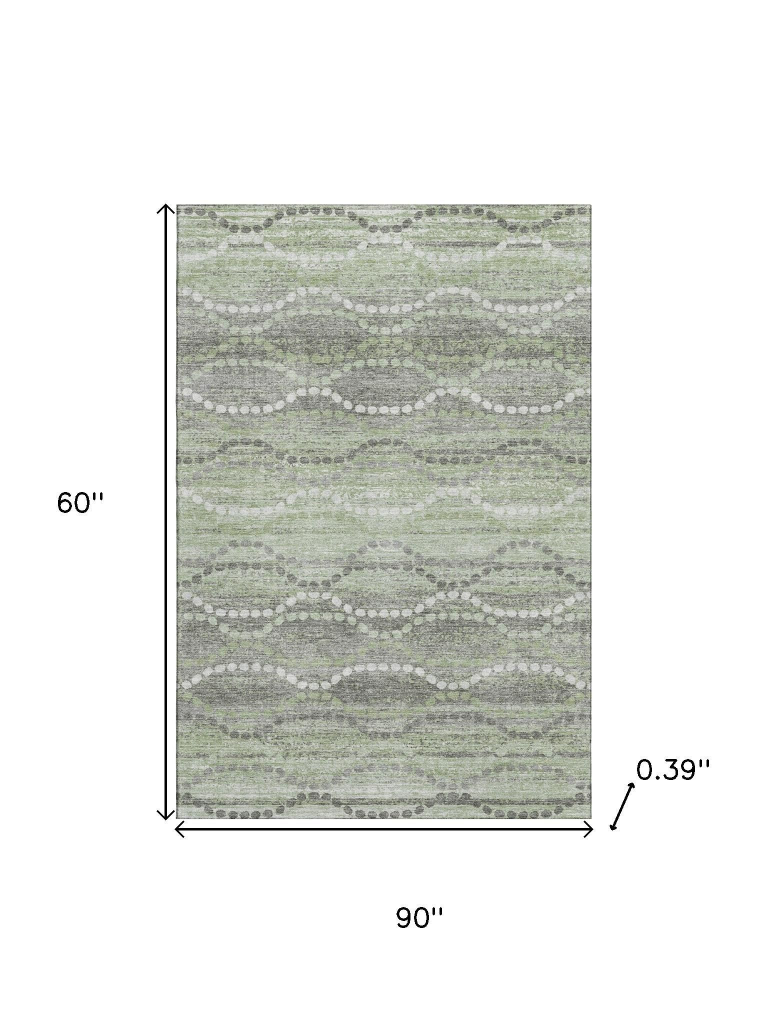 Add great coloration and comfortable texture to your space with this 5-foot x 8-foot green and ivory abstract geometric washable area rug with uv protection. Ideal for spaces with kids and pets, this rug is stain resistant to help repel dirt and spilled liquids. Built to last, this rug crafted from polyester fibers is known for its durability and long lasting appeal. Rugs are a great way to showcase your style, hide imperfections, warm your home and reduce noise. This larger sized, transitional styled rug is ready to create a focal point or statement piece in your room. 60.00-inch h x 90.00-inch w x 0.39-inch d.
