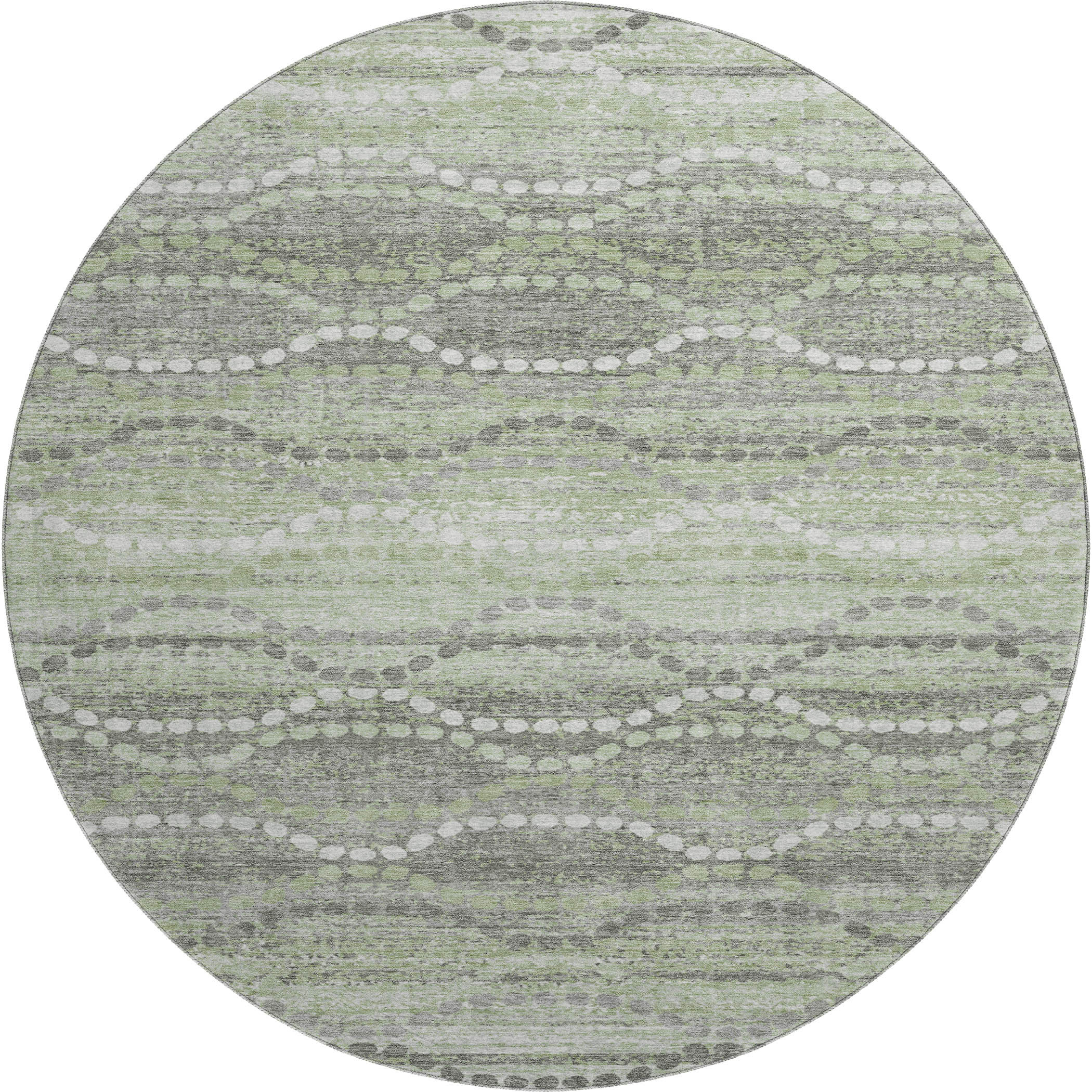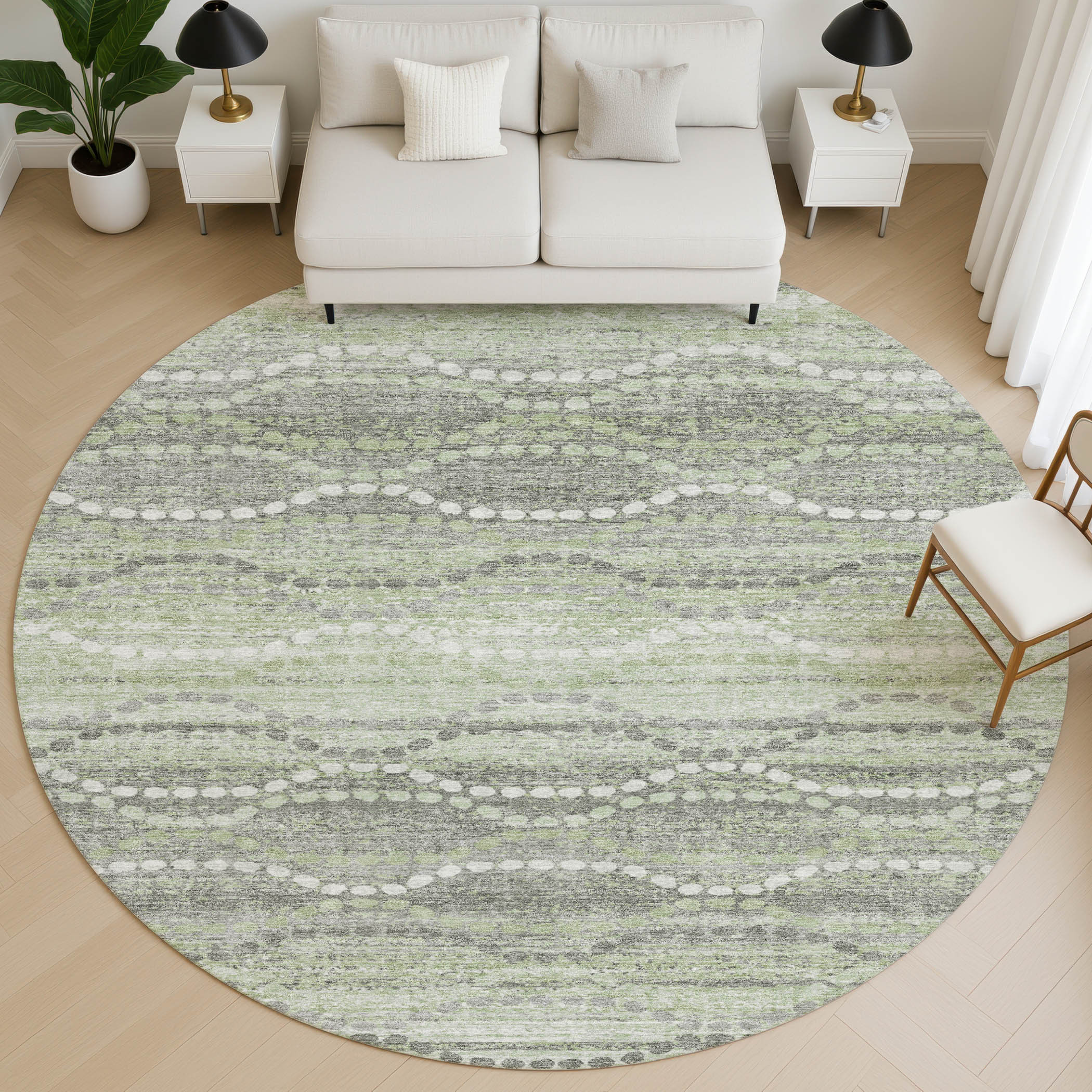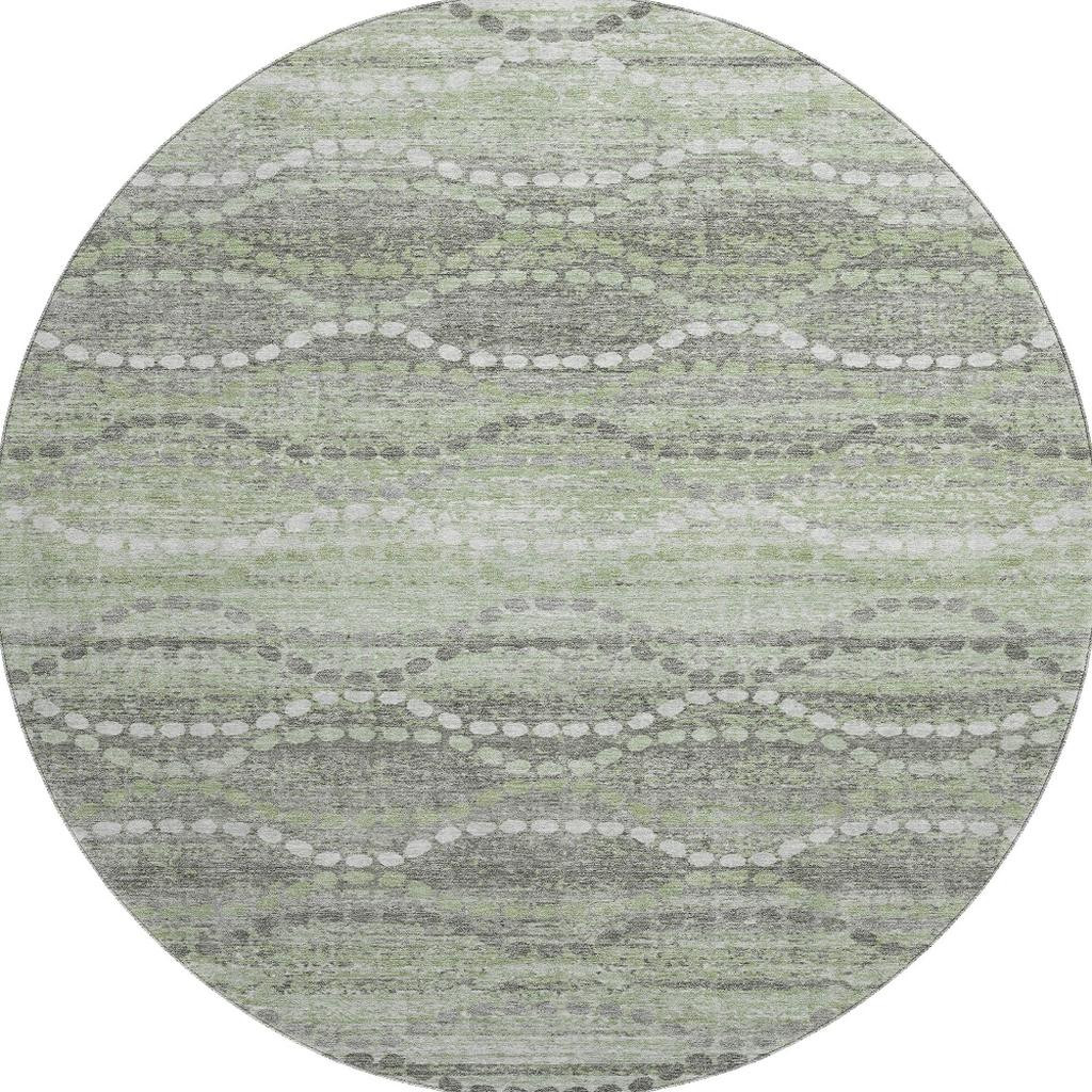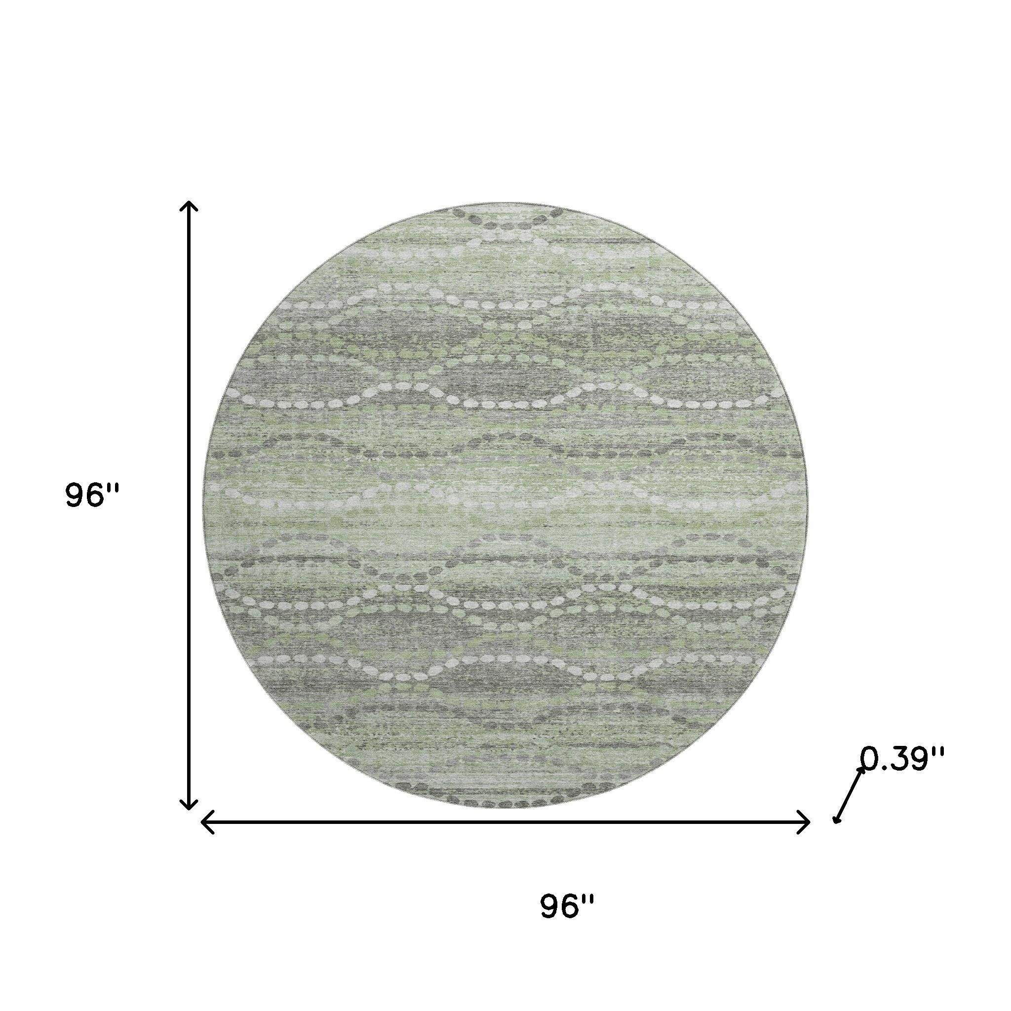 Add great coloration and comfortable texture to your space with this 8-foot green and ivory abstract geometric washable round rug with uv protection. Ideal for spaces with kids and pets, this rug is stain resistant to help repel dirt and spilled liquids. Built to last, this rug crafted from polyester fibers is known for its durability and long lasting appeal. Rugs are a great way to showcase your style, hide imperfections, warm your home and reduce noise. This larger sized, transitional styled rug is ready to create a focal point or statement piece in your room. 96.00-inch h x 96.00-inch w x 0.39-inch d.