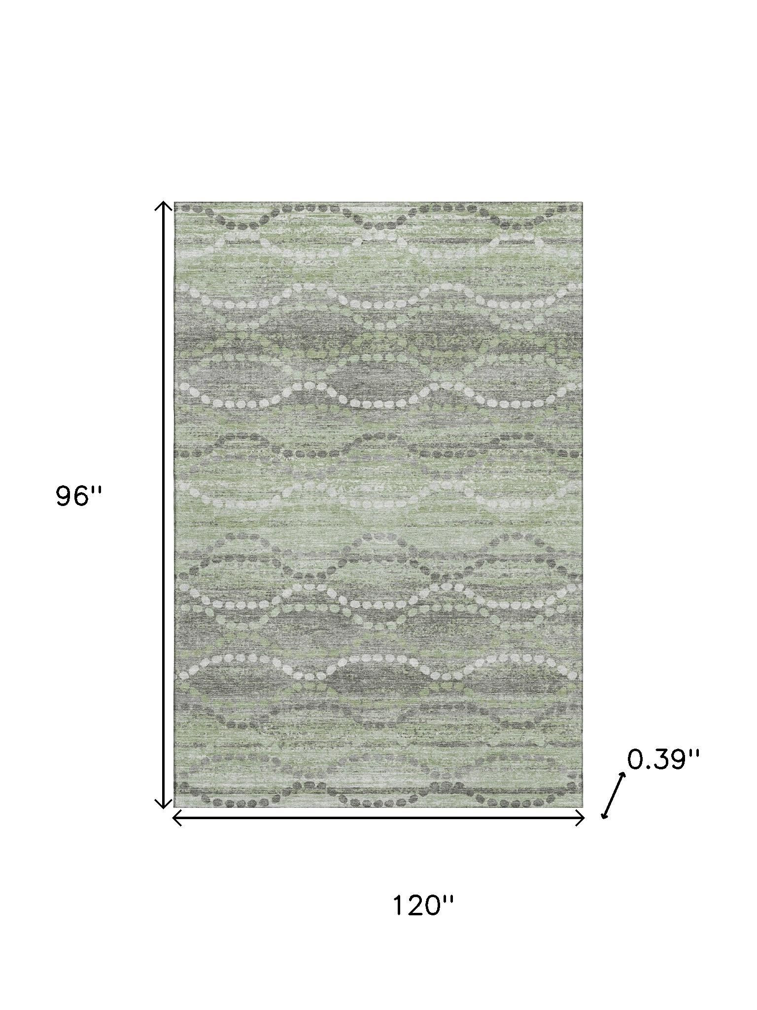 Set an inviting tone in your space with this 8-foot x 10-foot green and ivory abstract geometric washable area rug with uv protection. Ideal for spaces with kids and pets, this rug is stain resistant to help repel dirt and spilled liquids. Built to last, this rug crafted from polyester fibers is known for its durability and long lasting appeal. Rugs are a great way to showcase your style, hide imperfections, warm your home and reduce noise. This larger sized, transitional styled rug is ready to create a focal point or statement piece in your room. 96.00-inch h x 120.00-inch w x 0.39-inch d.