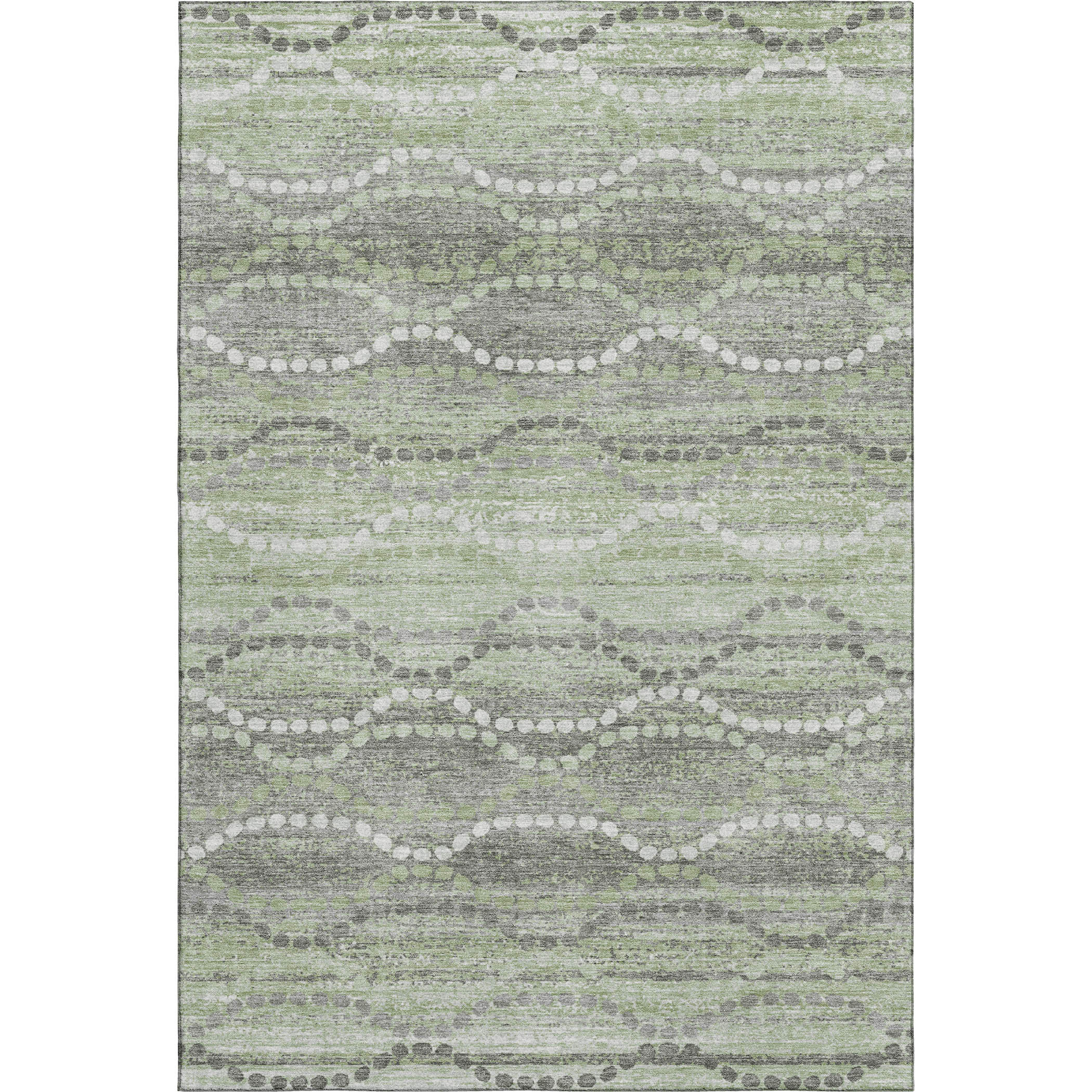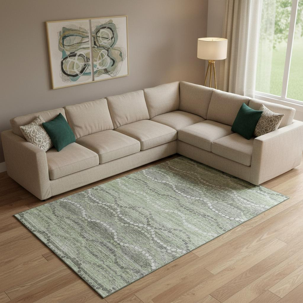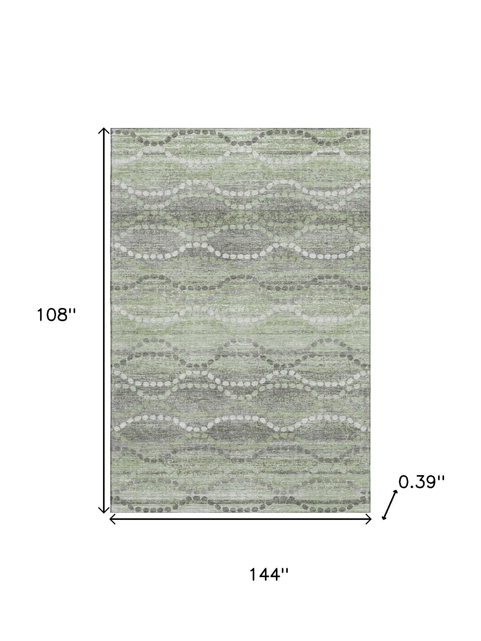 This 9-foot x 12-foot green and ivory abstract geometric washable area rug with uv protection, is a great way to add warmth to a room. Ideal for spaces with kids and pets, this rug is stain resistant to help repel dirt and spilled liquids. Built to last, this rug crafted from polyester fibers is known for its durability and long lasting appeal. Rugs are a great way to showcase your style, hide imperfections, warm your home and reduce noise. This larger sized, transitional styled rug is ready to create a focal point or statement piece in your room. 108.00-inch h x 144.00-inch w x 0.39-inch d.