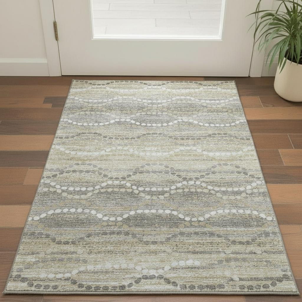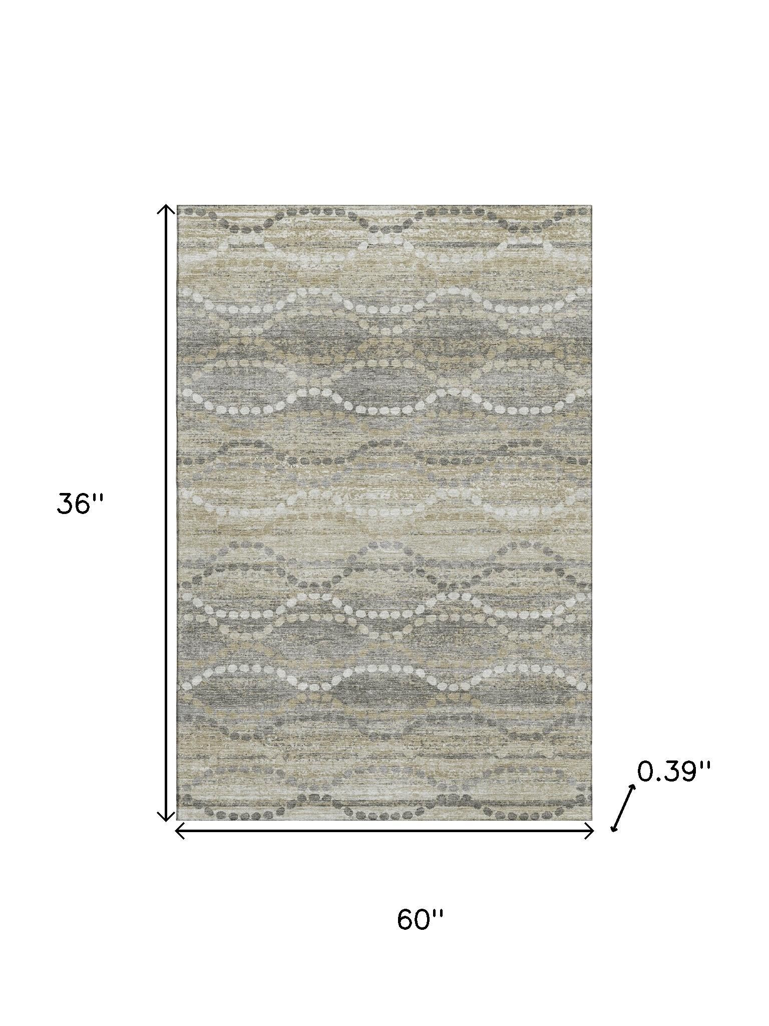 This 3-foot x 5-foot pewter and ivory abstract geometric washable area rug with uv protection, is a great way to add warmth to a room. Ideal for spaces with kids and pets, this rug is stain resistant to help repel dirt and spilled liquids. Built to last, this rug crafted from polyester fibers is known for its durability and long lasting appeal. Rugs are a great way to showcase your style, hide imperfections, warm your home and reduce noise. This smaller sized, transitional styled rug is just what you need for your walkway, bedside, in front of door, cabinet, refrigerator, or chair. 36.00-inch h x 60.00-inch w x 0.39-inch d.