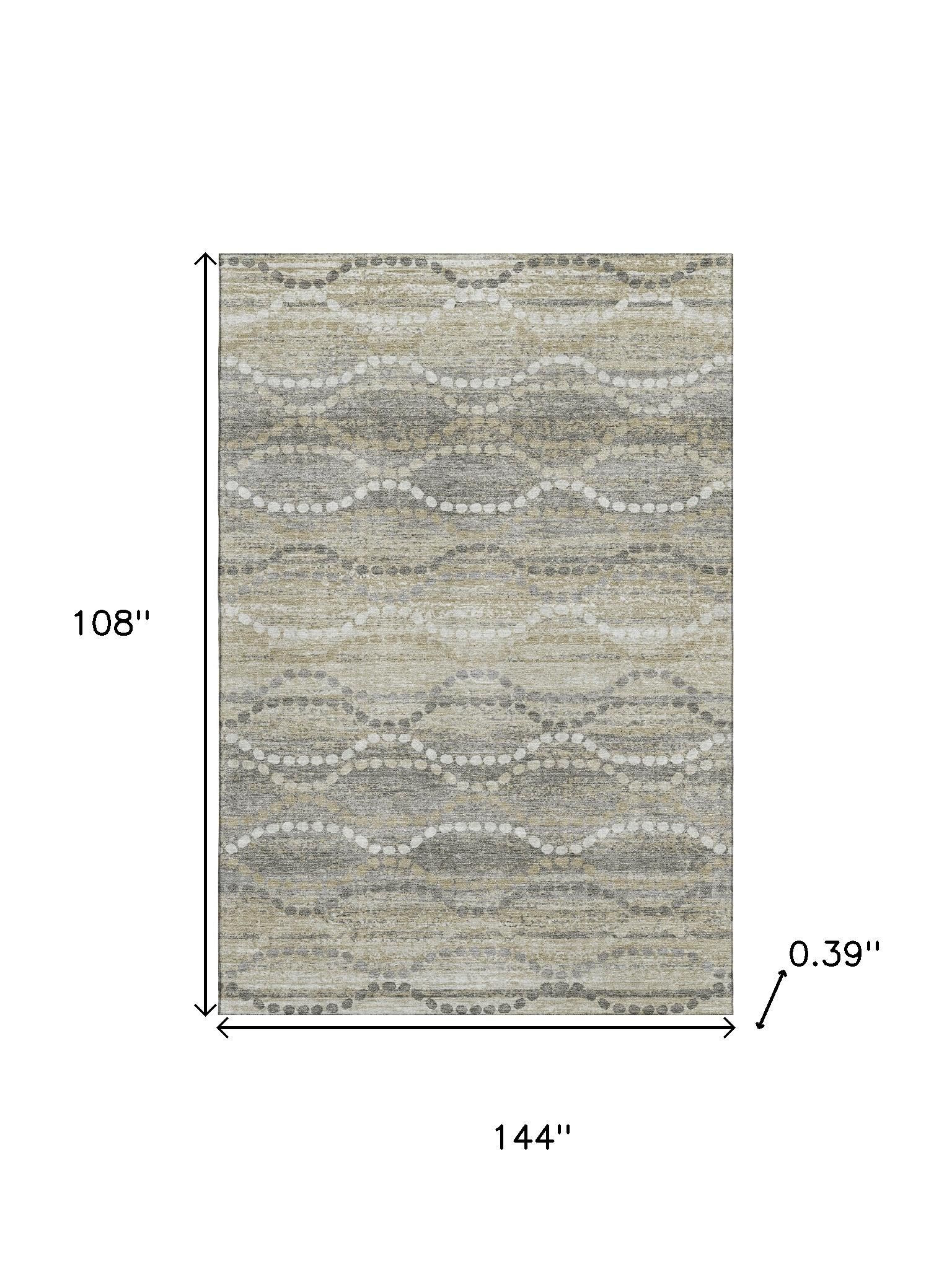 Set an inviting tone in your space with this 9-foot x 12-foot pewter and ivory abstract geometric washable area rug with uv protection. Ideal for spaces with kids and pets, this rug is stain resistant to help repel dirt and spilled liquids. Built to last, this rug crafted from polyester fibers is known for its durability and long lasting appeal. Rugs are a great way to showcase your style, hide imperfections, warm your home and reduce noise. This larger sized, transitional styled rug is ready to create a focal point or statement piece in your room. 108.00-inch h x 144.00-inch w x 0.39-inch d.