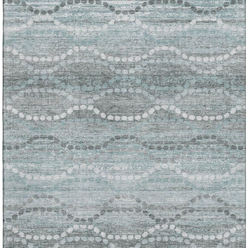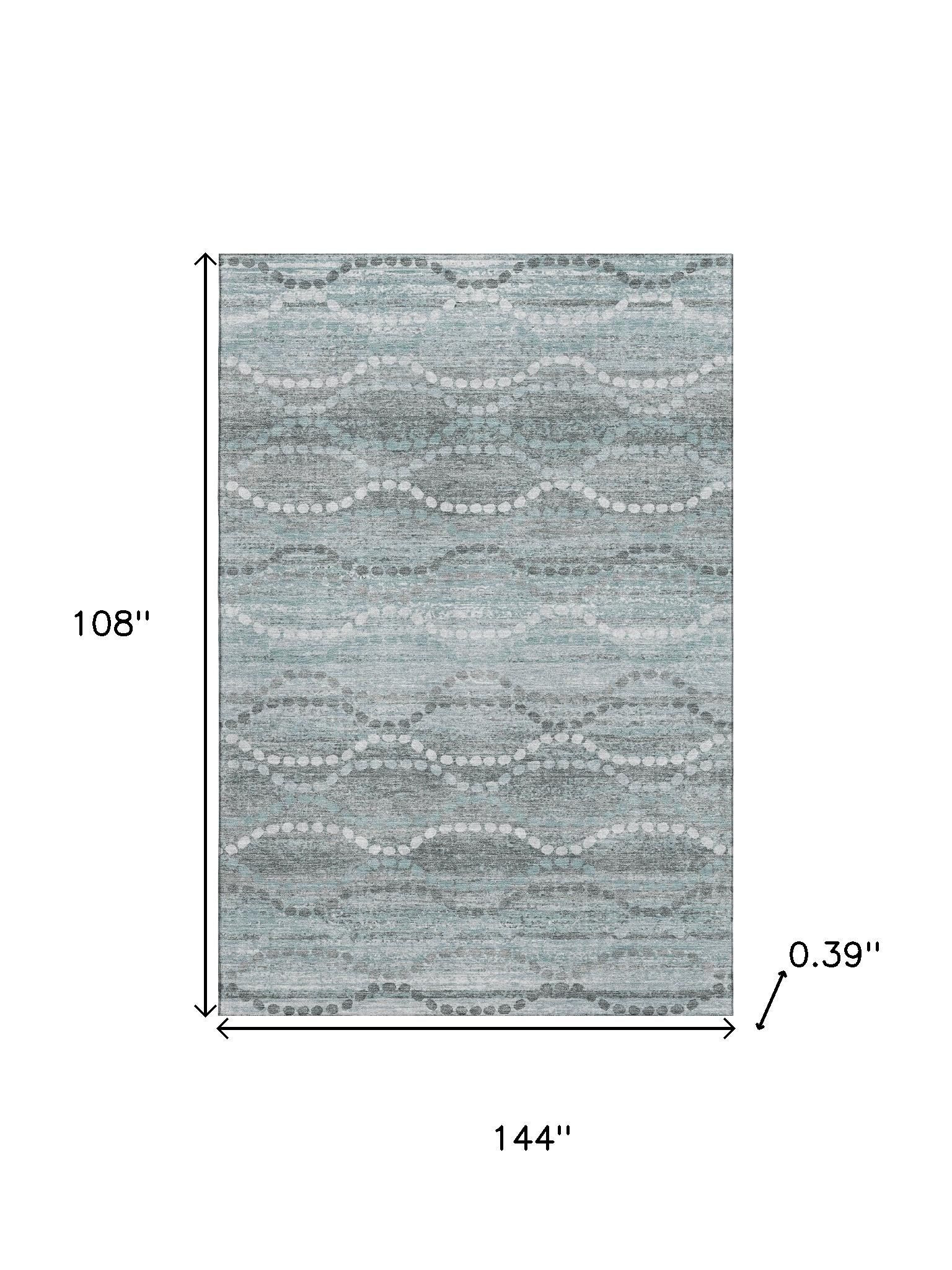 Add some artistry to your room with this 9-foot x 12-foot teal and ivory abstract geometric washable area rug with uv protection. Ideal for spaces with kids and pets, this rug is stain resistant to help repel dirt and spilled liquids. Built to last, this rug crafted from polyester fibers is known for its durability and long lasting appeal. Rugs are a great way to showcase your style, hide imperfections, warm your home and reduce noise. This larger sized, transitional styled rug is ready to create a focal point or statement piece in your room. 108.00-inch h x 144.00-inch w x 0.39-inch d.