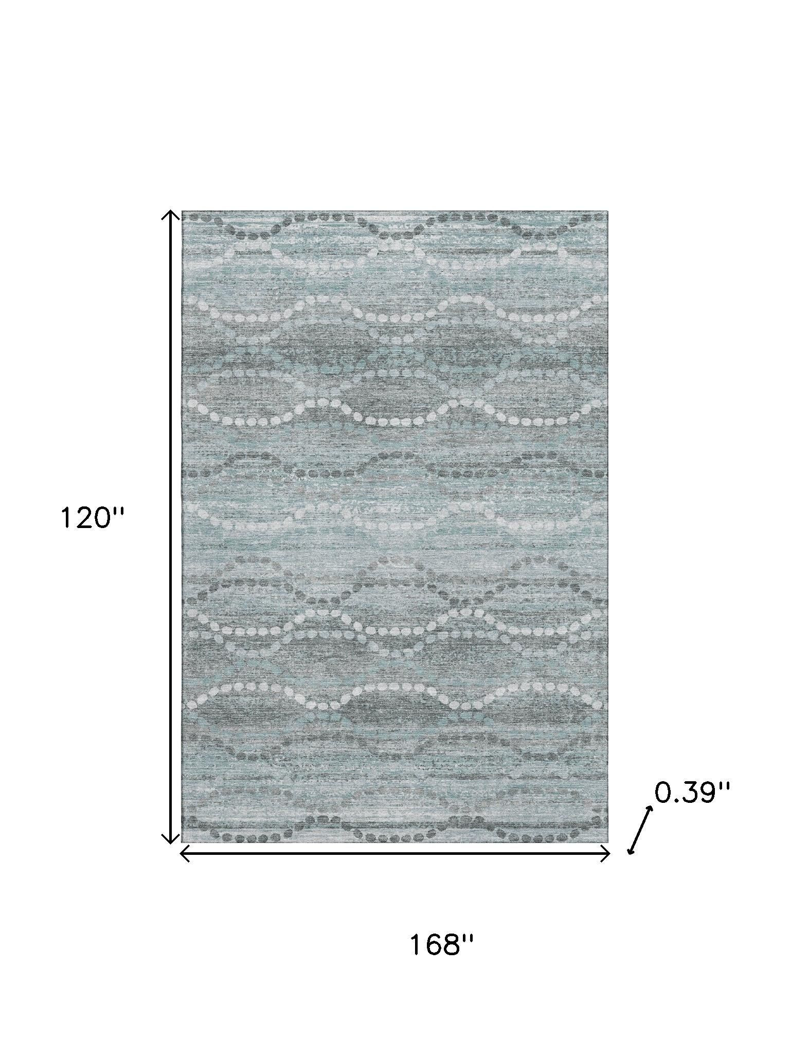 Add great coloration and comfortable texture to your space with this 10-foot x 14-foot teal and ivory abstract geometric washable area rug with uv protection. Ideal for spaces with kids and pets, this rug is stain resistant to help repel dirt and spilled liquids. Built to last, this rug crafted from polyester fibers is known for its durability and long lasting appeal. Rugs are a great way to showcase your style, hide imperfections, warm your home and reduce noise. This larger sized, transitional styled rug is ready to create a focal point or statement piece in your room. 120.00-inch h x 168.00-inch w x 0.39-inch d.