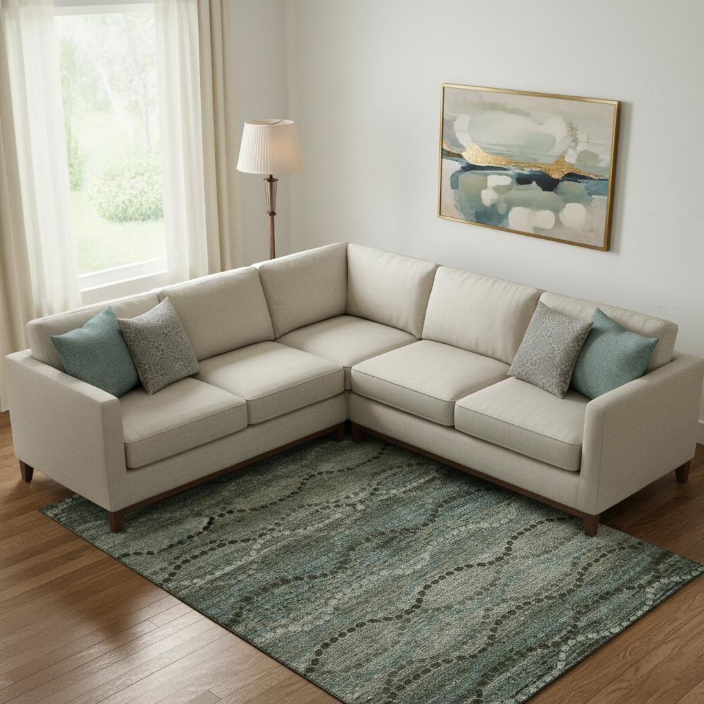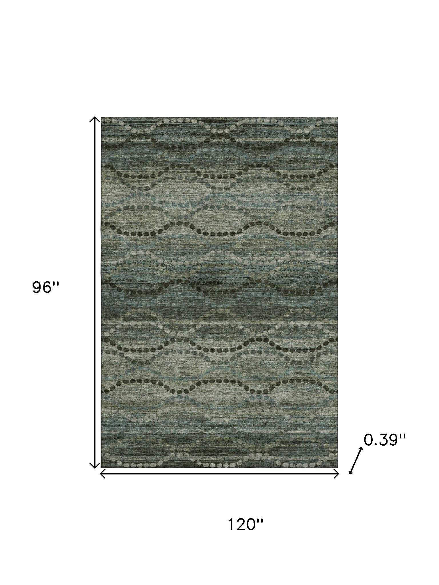 Set an inviting tone in your space with this 8-foot x 10-foot sage and gray abstract geometric washable area rug with uv protection. Ideal for spaces with kids and pets, this rug is stain resistant to help repel dirt and spilled liquids. Built to last, this rug crafted from polyester fibers is known for its durability and long lasting appeal. Rugs are a great way to showcase your style, hide imperfections, warm your home and reduce noise. This larger sized, transitional styled rug is ready to create a focal point or statement piece in your room. 96.00-inch h x 120.00-inch w x 0.39-inch d.