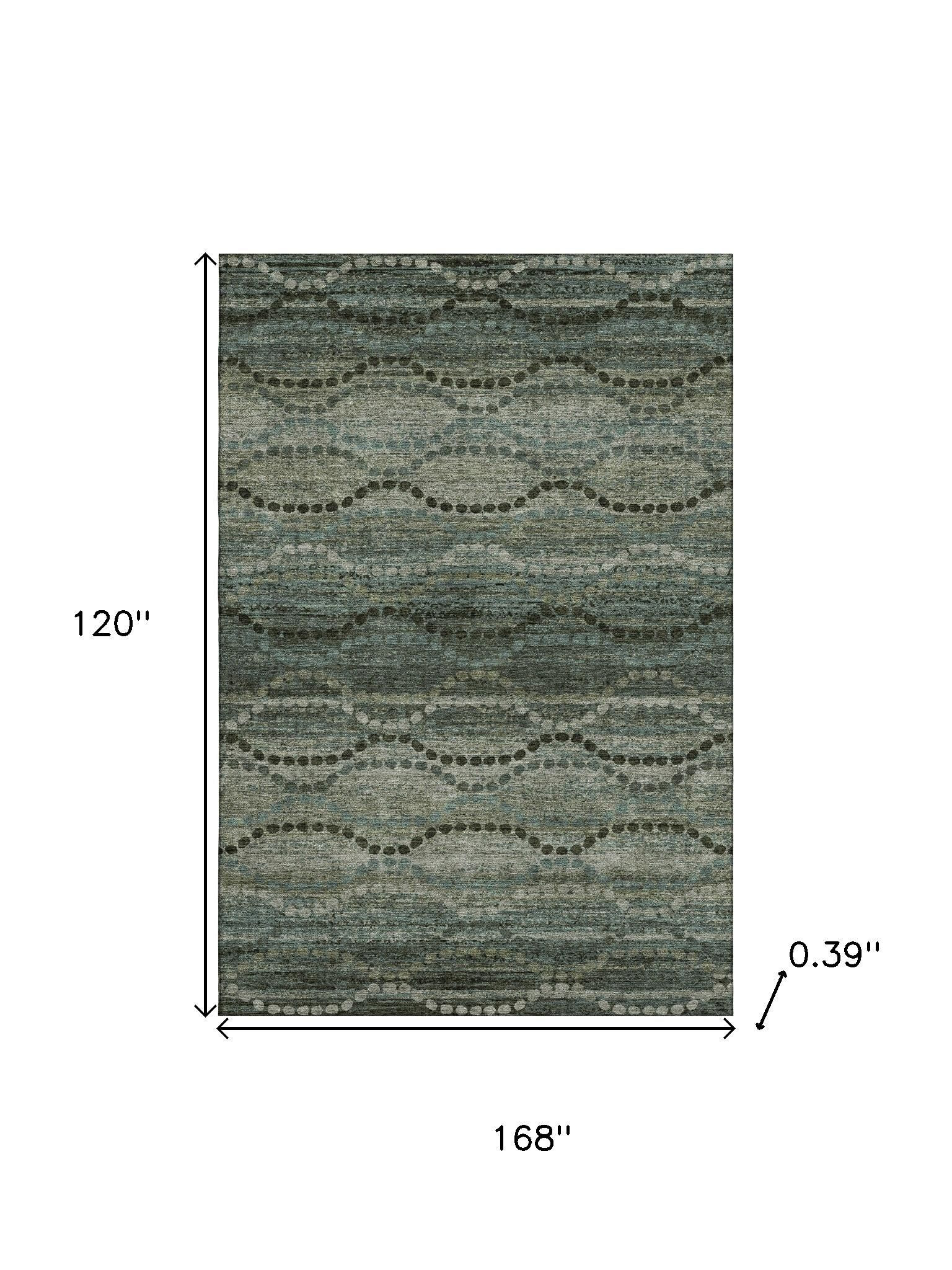 Add some artistry to your room with this 10-foot x 14-foot sage and gray abstract geometric washable area rug with uv protection. Ideal for spaces with kids and pets, this rug is stain resistant to help repel dirt and spilled liquids. Built to last, this rug crafted from polyester fibers is known for its durability and long lasting appeal. Rugs are a great way to showcase your style, hide imperfections, warm your home and reduce noise. This larger sized, transitional styled rug is ready to create a focal point or statement piece in your room. 120.00-inch h x 168.00-inch w x 0.39-inch d.