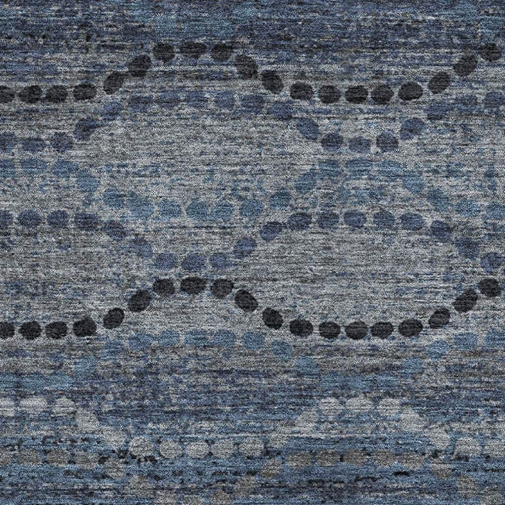 Set an inviting tone in your space with this 5-foot x 8-foot navy blue and gray abstract geometric washable area rug with uv protection. Ideal for spaces with kids and pets, this rug is stain resistant to help repel dirt and spilled liquids. Built to last, this rug crafted from polyester fibers is known for its durability and long lasting appeal. Rugs are a great way to showcase your style, hide imperfections, warm your home and reduce noise. This larger sized, transitional styled rug is ready to create a focal point or statement piece in your room. 60.00-inch h x 90.00-inch w x 0.39-inch d.