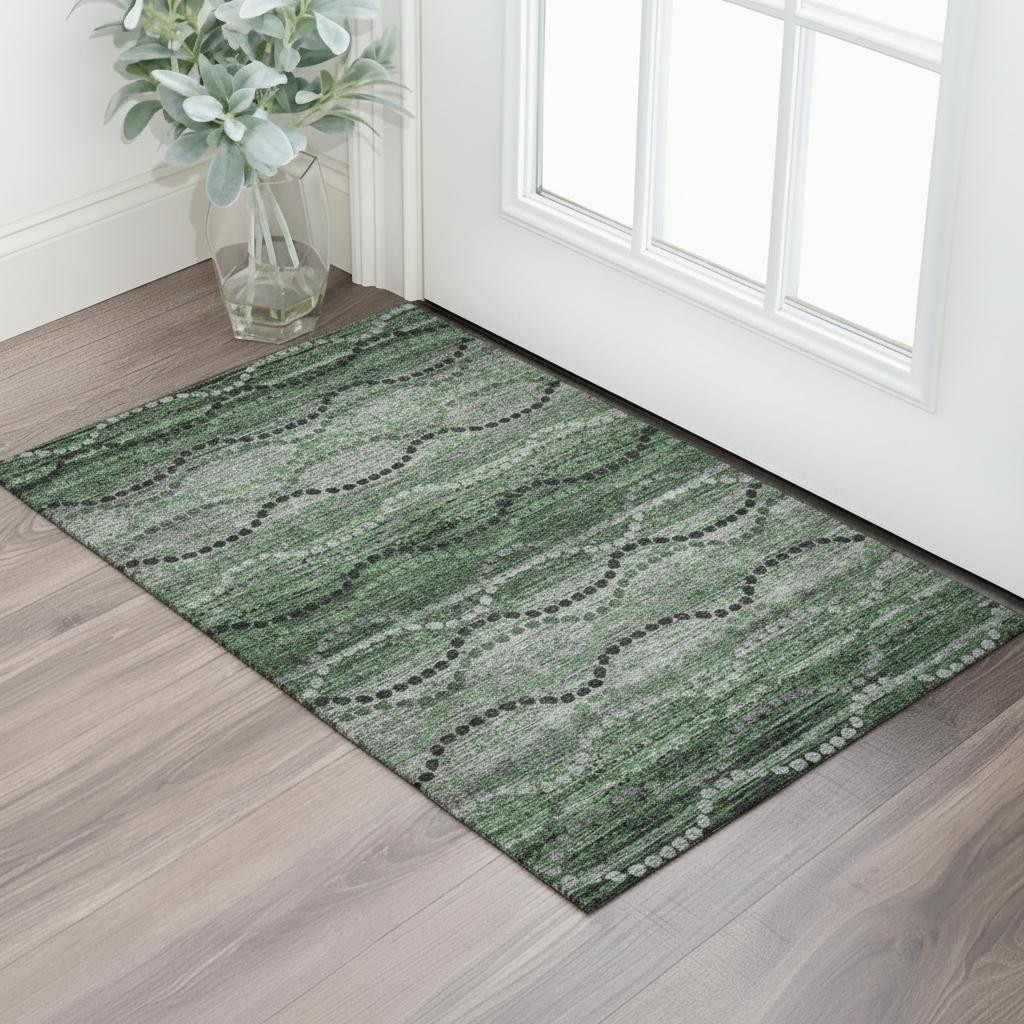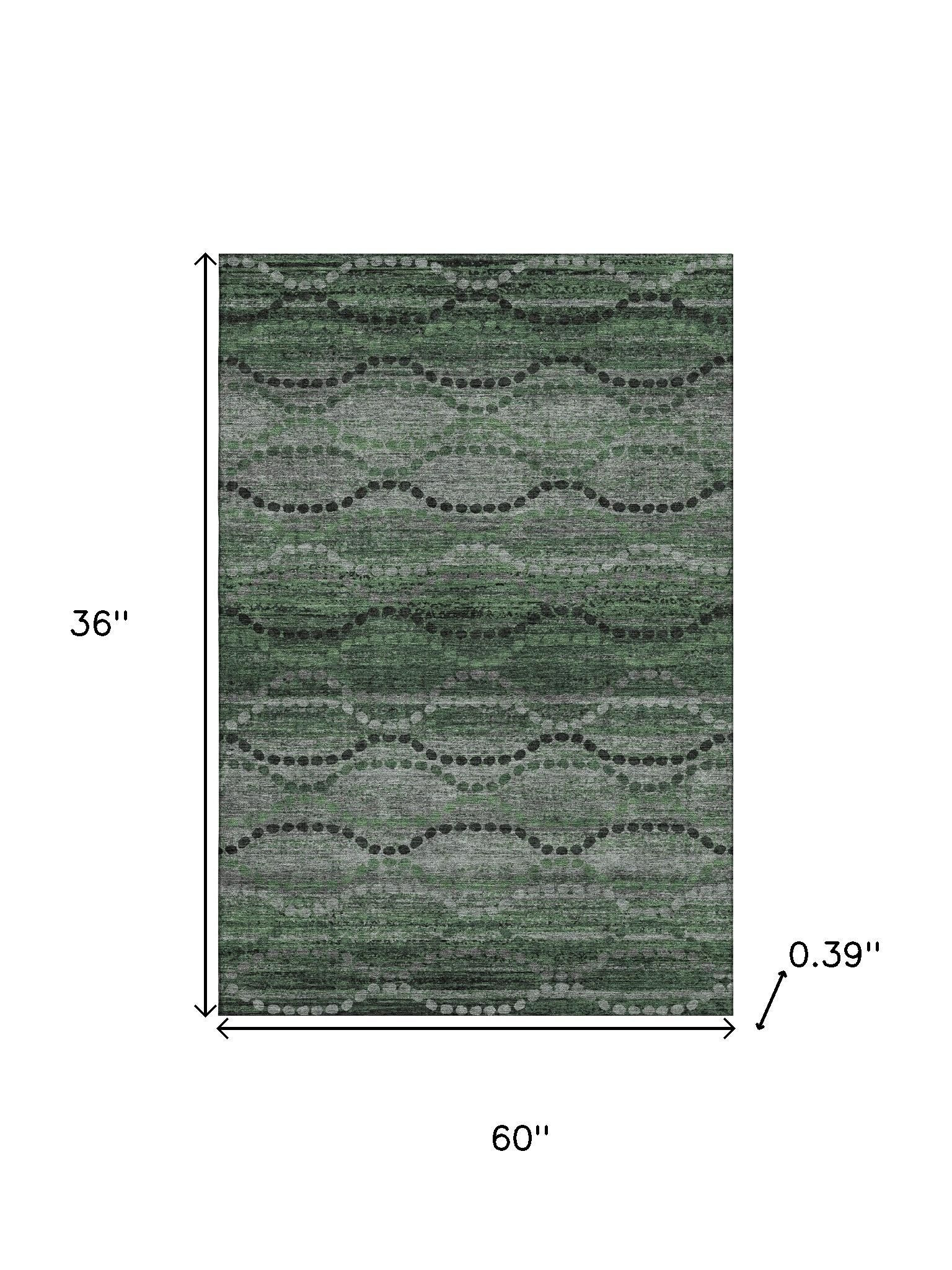 This 3-foot x 5-foot olive green and gray abstract geometric washable area rug with uv protection, is a great way to add warmth to a room. Ideal for spaces with kids and pets, this rug is stain resistant to help repel dirt and spilled liquids. Built to last, this rug crafted from polyester fibers is known for its durability and long lasting appeal. Rugs are a great way to showcase your style, hide imperfections, warm your home and reduce noise. This smaller sized, transitional styled rug is just what you need for your walkway, bedside, in front of door, cabinet, refrigerator, or chair. 36.00-inch h x 60.00-inch w x 0.39-inch d.