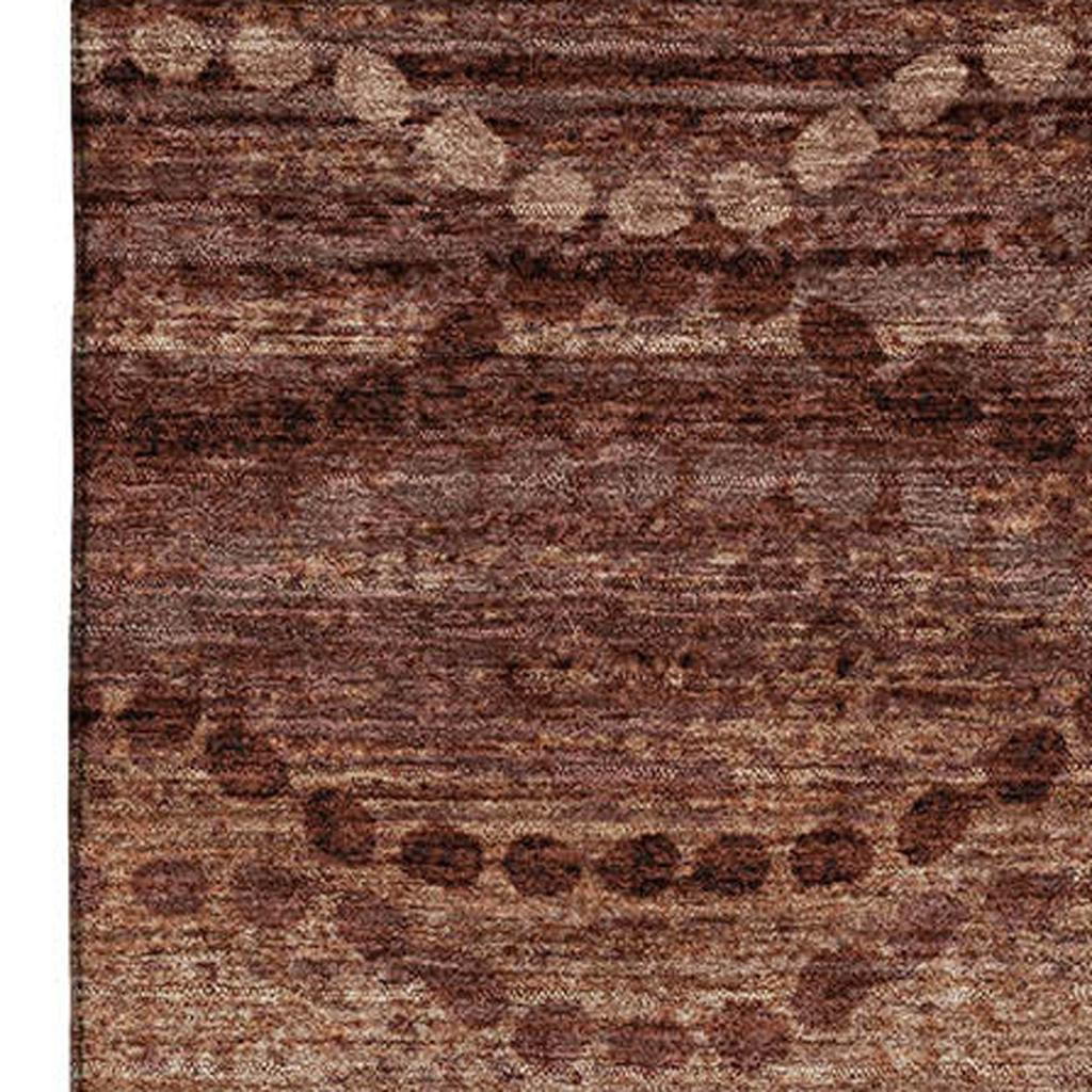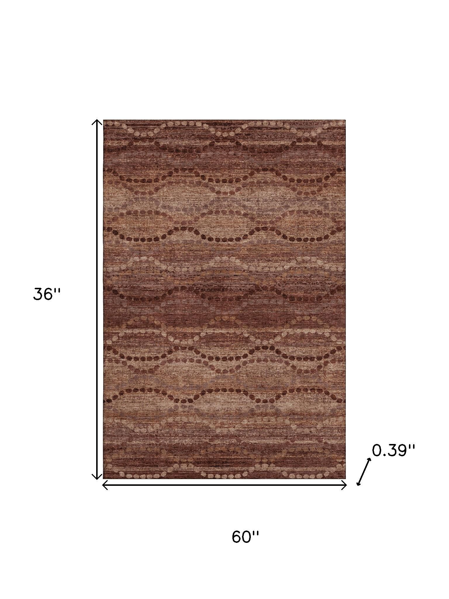 This 3-foot x 5-foot rust and copper abstract geometric washable area rug with uv protection, is a great way to add warmth to a room. Ideal for spaces with kids and pets, this rug is stain resistant to help repel dirt and spilled liquids. Built to last, this rug crafted from polyester fibers is known for its durability and long lasting appeal. Rugs are a great way to showcase your style, hide imperfections, warm your home and reduce noise. This smaller sized, transitional styled rug is just what you need for your walkway, bedside, in front of door, cabinet, refrigerator, or chair. 36.00-inch h x 60.00-inch w x 0.39-inch d.