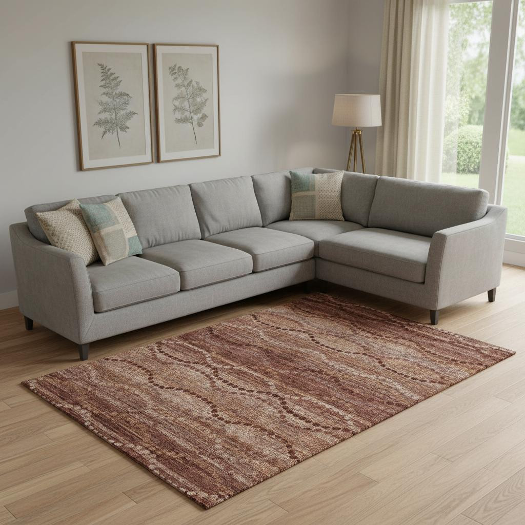 Add great coloration and comfortable texture to your space with this 8-foot x 10-foot rust and copper abstract geometric washable area rug with uv protection. Ideal for spaces with kids and pets, this rug is stain resistant to help repel dirt and spilled liquids. Built to last, this rug crafted from polyester fibers is known for its durability and long lasting appeal. Rugs are a great way to showcase your style, hide imperfections, warm your home and reduce noise. This larger sized, transitional styled rug is ready to create a focal point or statement piece in your room. 96.00-inch h x 120.00-inch w x 0.39-inch d.