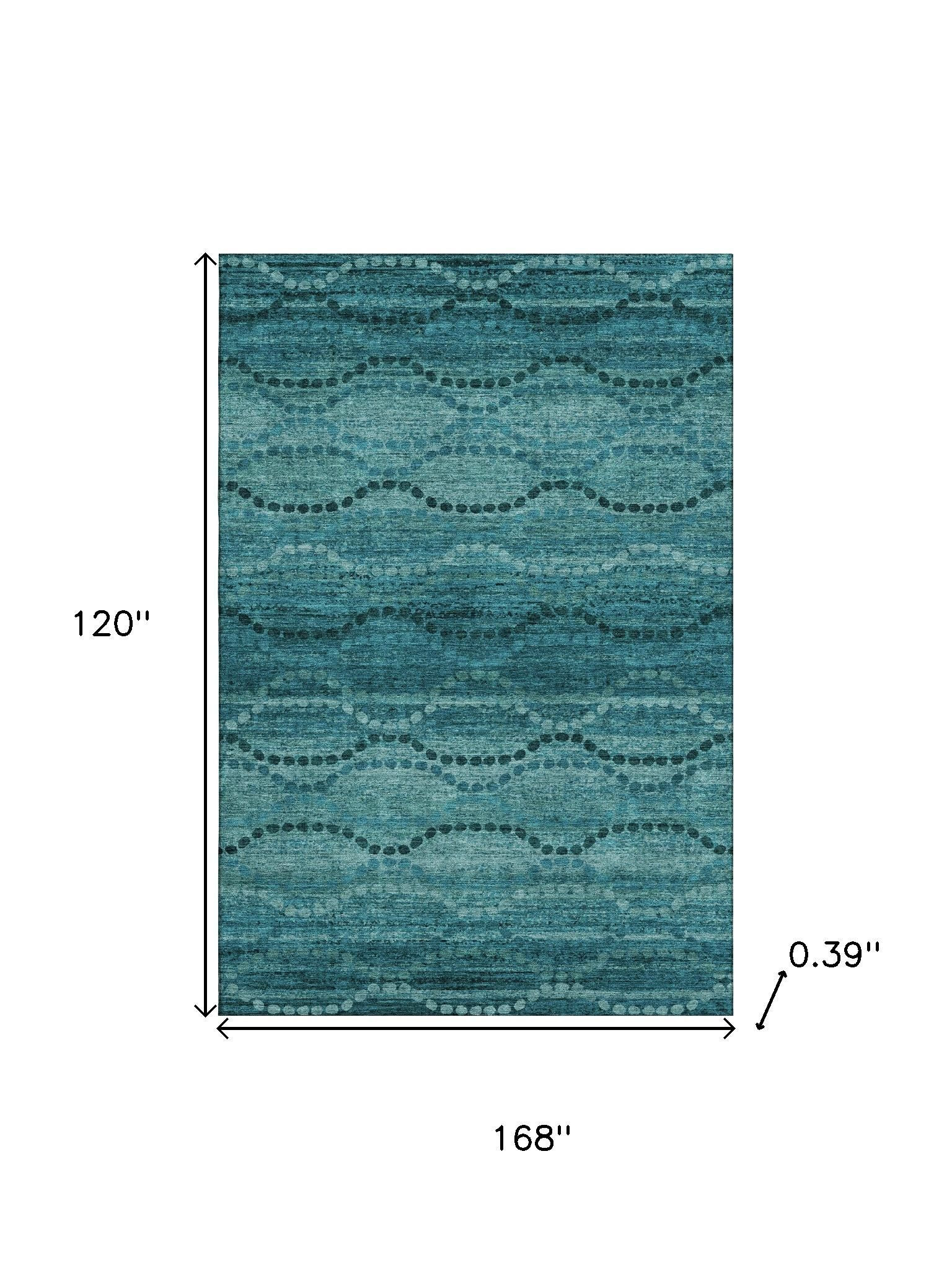 Add great coloration and comfortable texture to your space with this 10-foot x 14-foot turquoise and aqua abstract geometric washable area rug with uv protection. Ideal for spaces with kids and pets, this rug is stain resistant to help repel dirt and spilled liquids. Built to last, this rug crafted from polyester fibers is known for its durability and long lasting appeal. Rugs are a great way to showcase your style, hide imperfections, warm your home and reduce noise. This larger sized, transitional styled rug is ready to create a focal point or statement piece in your room. 120.00-inch h x 168.00-inch w x 0.39-inch d.