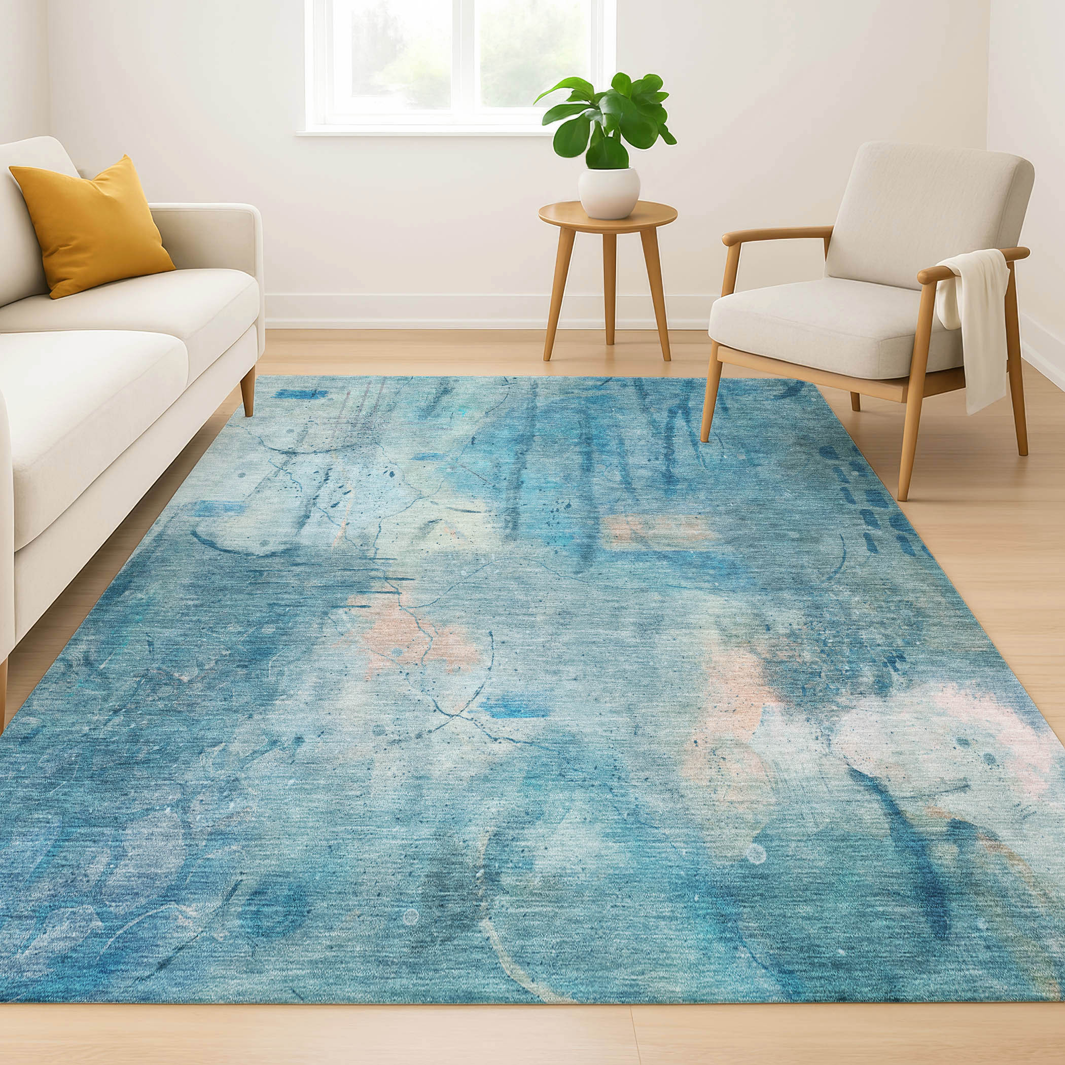 Add great coloration and comfortable texture to your space with this 9-foot x 12-foot blue and beige abstract washable area rug with uv protection. Ideal for spaces with kids and pets, this rug is stain resistant to help repel dirt and spilled liquids. Built to last, this rug crafted from polyester fibers is known for its durability and long lasting appeal. Rugs are a great way to showcase your style, hide imperfections, warm your home and reduce noise. This larger sized, transitional styled rug is ready to create a focal point or statement piece in your room. 108.00-inch h x 144.00-inch w x 0.39-inch d.