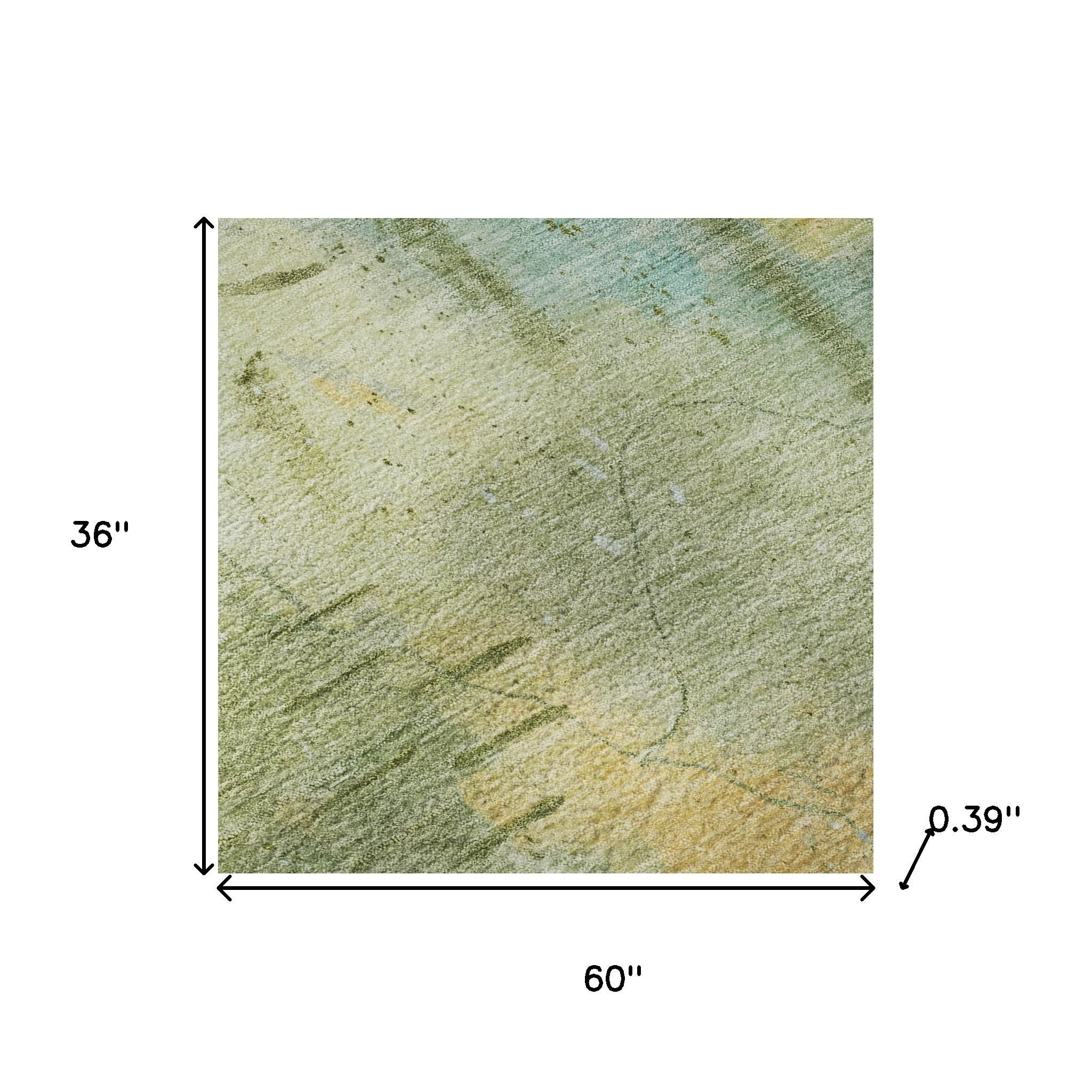 Set an inviting tone in your space with this 3-foot x 5-foot sage and teal abstract washable area rug with uv protection. Ideal for spaces with kids and pets, this rug is stain resistant to help repel dirt and spilled liquids. Built to last, this rug crafted from polyester fibers is known for its durability and long lasting appeal. Rugs are a great way to showcase your style, hide imperfections, warm your home and reduce noise. This smaller sized, transitional styled rug is just what you need for your walkway, bedside, in front of door, cabinet, refrigerator, or chair. 36.00-inch h x 60.00-inch w x 0.39-inch d.