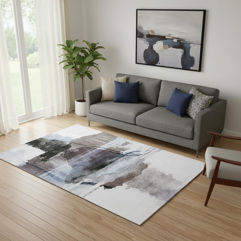 This 5-foot x 8-foot brown and ivory abstract washable area rug with uv protection, is a great way to add warmth to a room. Ideal for spaces with kids and pets, this rug is stain resistant to help repel dirt and spilled liquids. Built to last, this rug crafted from polyester fibers is known for its durability and long lasting appeal. Rugs are a great way to showcase your style, hide imperfections, warm your home and reduce noise. This larger sized, transitional styled rug is ready to create a focal point or statement piece in your room. 60.00-inch h x 90.00-inch w x 0.39-inch d.
