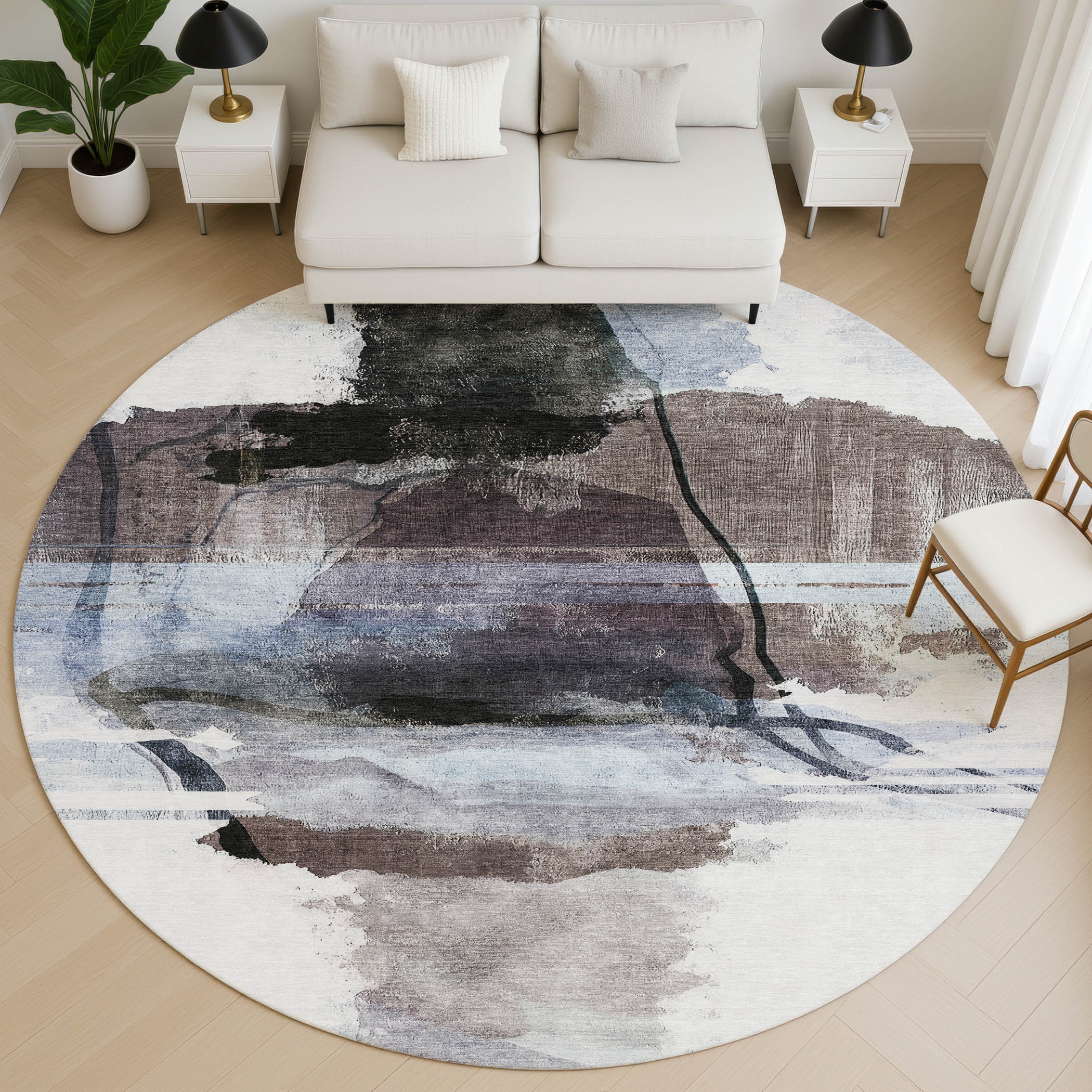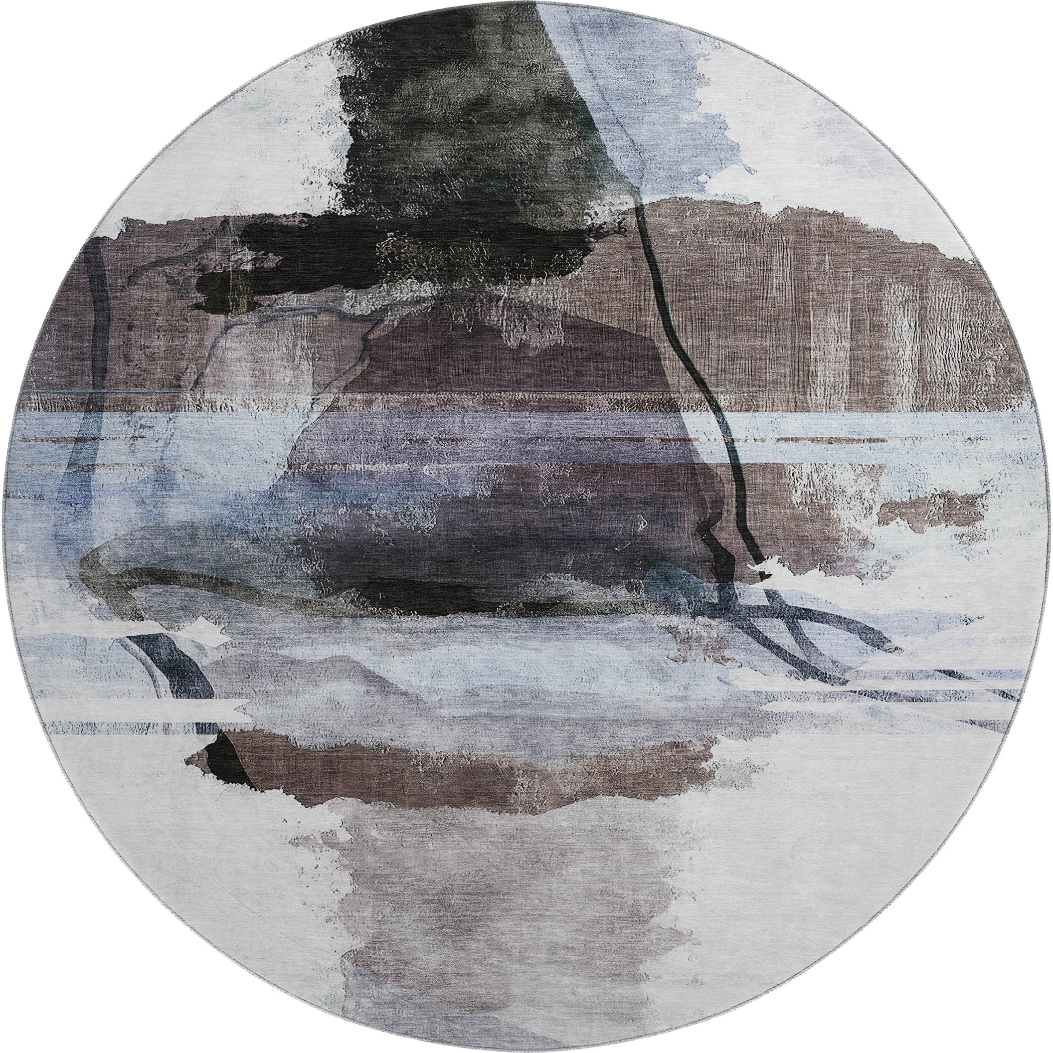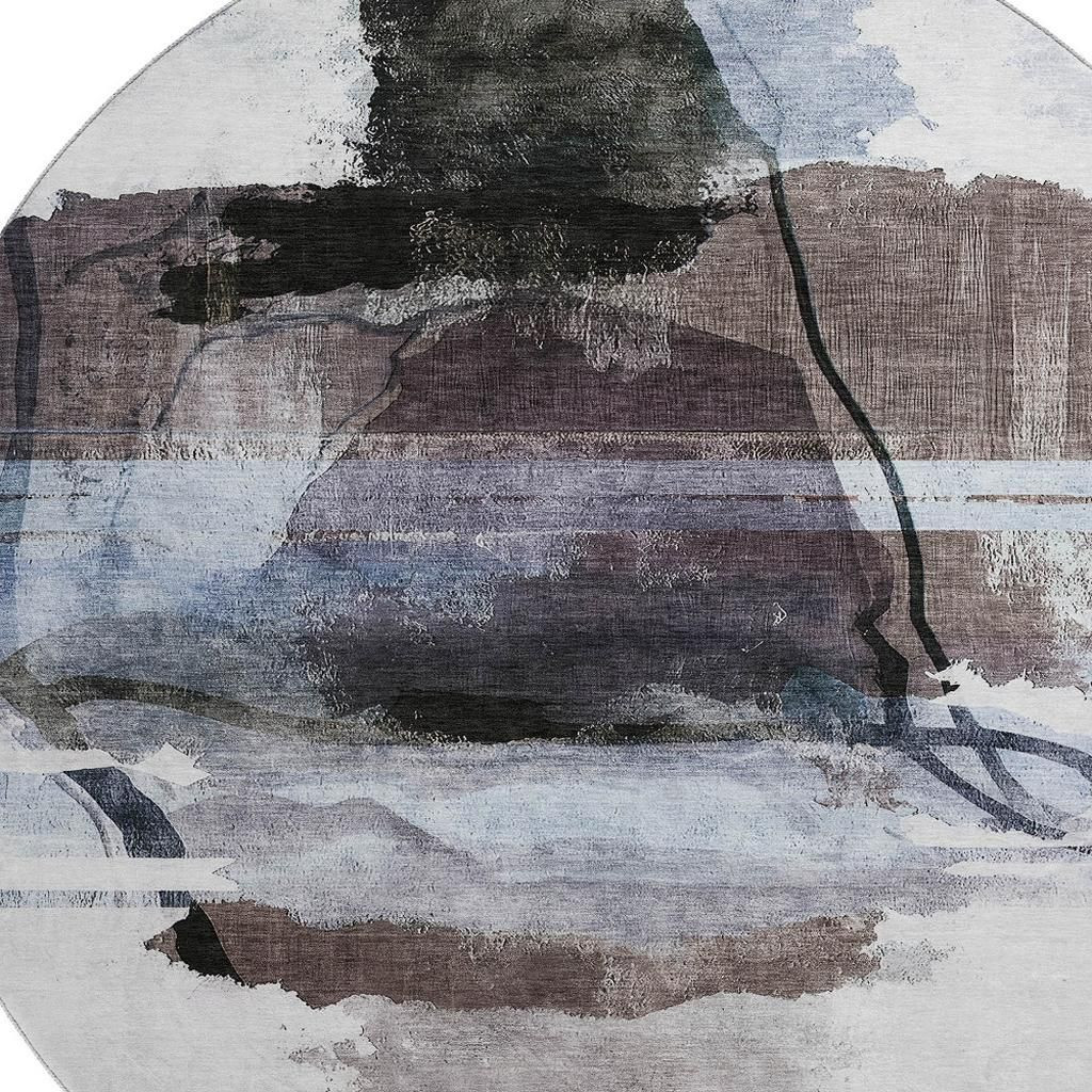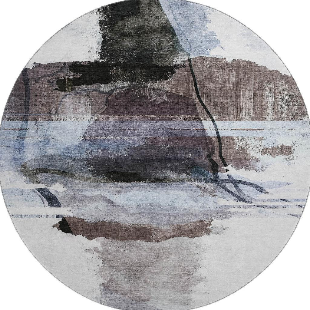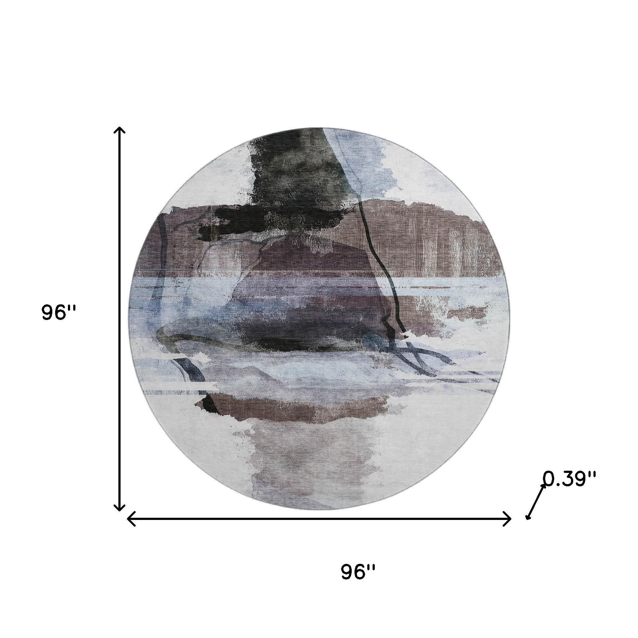 This 8-foot brown and ivory abstract washable round rug with uv protection, is a great way to add warmth to a room. Ideal for spaces with kids and pets, this rug is stain resistant to help repel dirt and spilled liquids. Built to last, this rug crafted from polyester fibers is known for its durability and long lasting appeal. Rugs are a great way to showcase your style, hide imperfections, warm your home and reduce noise. This larger sized, transitional styled rug is ready to create a focal point or statement piece in your room. 96.00-inch h x 96.00-inch w x 0.39-inch d.