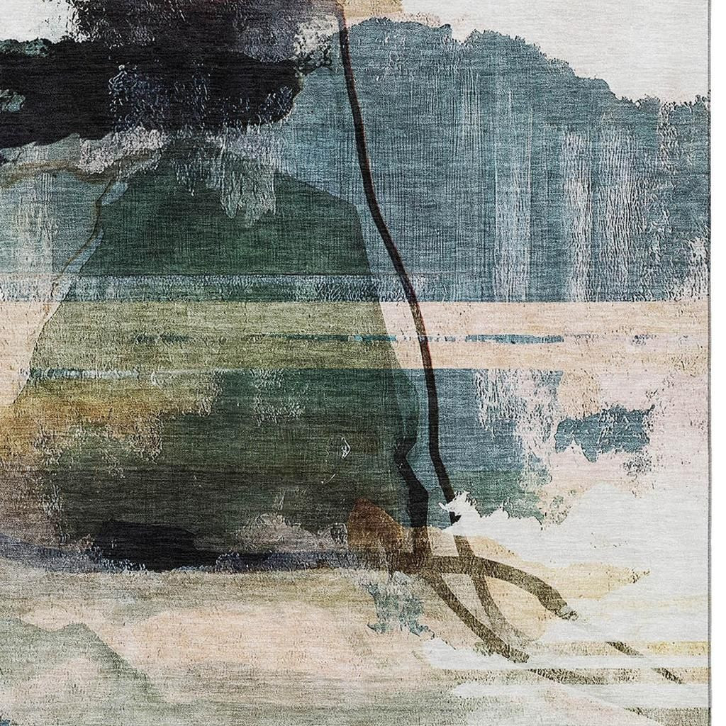This 9-foot x 12-foot green and ivory abstract washable area rug with uv protection, is a great way to add warmth to a room. Ideal for spaces with kids and pets, this rug is stain resistant to help repel dirt and spilled liquids. Built to last, this rug crafted from polyester fibers is known for its durability and long lasting appeal. Rugs are a great way to showcase your style, hide imperfections, warm your home and reduce noise. This larger sized, transitional styled rug is ready to create a focal point or statement piece in your room. 108.00-inch h x 144.00-inch w x 0.39-inch d.