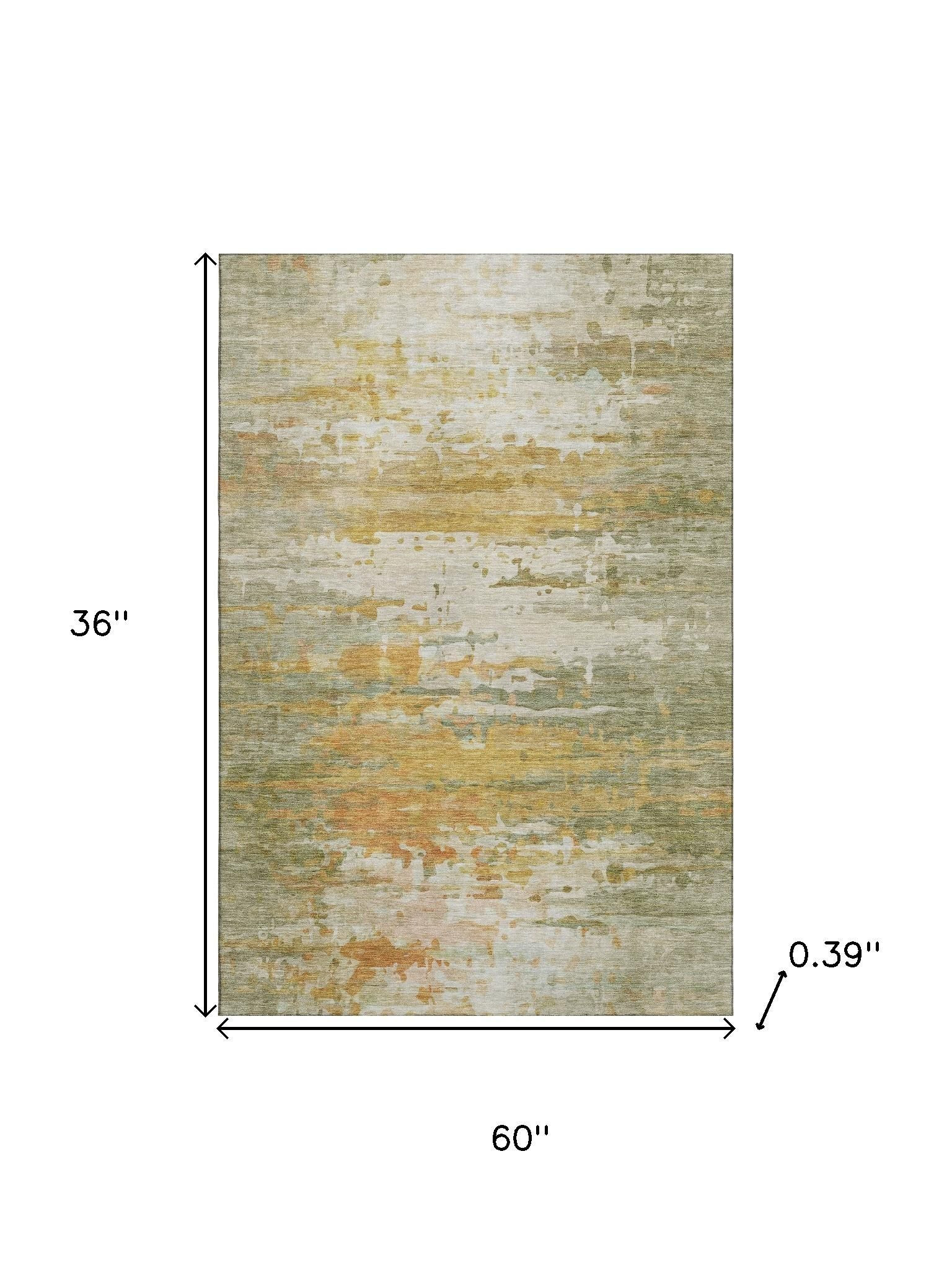 Add great coloration and comfortable texture to your space with this 3-foot x 5-foot sage and ivory abstract washable area rug with uv protection. Ideal for spaces with kids and pets, this rug is stain resistant to help repel dirt and spilled liquids. Built to last, this rug crafted from polyester fibers is known for its durability and long lasting appeal. Rugs are a great way to showcase your style, hide imperfections, warm your home and reduce noise. This smaller sized, transitional styled rug is just what you need for your walkway, bedside, in front of door, cabinet, refrigerator, or chair. 36.00-inch h x 60.00-inch w x 0.39-inch d.