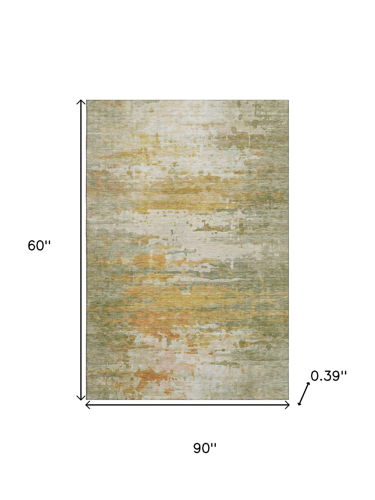 Add great coloration and comfortable texture to your space with this 5-foot x 8-foot sage and ivory abstract washable area rug with uv protection. Ideal for spaces with kids and pets, this rug is stain resistant to help repel dirt and spilled liquids. Built to last, this rug crafted from polyester fibers is known for its durability and long lasting appeal. Rugs are a great way to showcase your style, hide imperfections, warm your home and reduce noise. This larger sized, transitional styled rug is ready to create a focal point or statement piece in your room. 60.00-inch h x 90.00-inch w x 0.39-inch d.