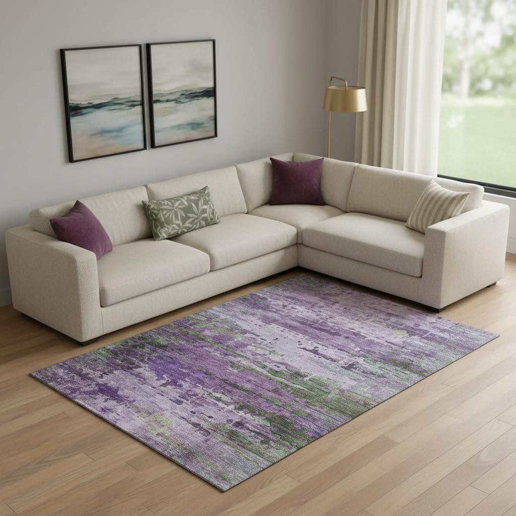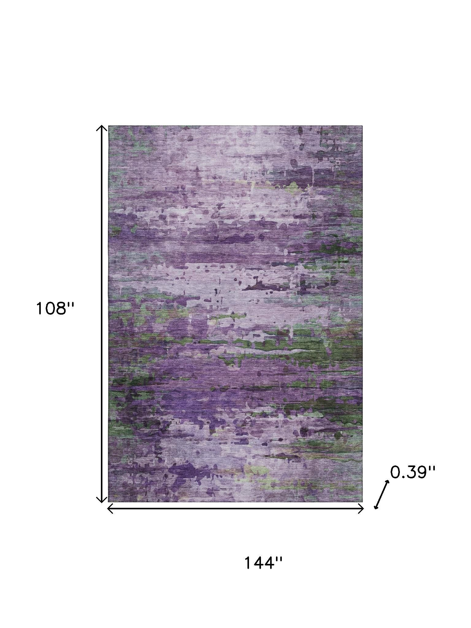 Add great coloration and comfortable texture to your space with this 9-foot x 12-foot purple and green abstract washable area rug with uv protection. Ideal for spaces with kids and pets, this rug is stain resistant to help repel dirt and spilled liquids. Built to last, this rug crafted from polyester fibers is known for its durability and long lasting appeal. Rugs are a great way to showcase your style, hide imperfections, warm your home and reduce noise. This larger sized, transitional styled rug is ready to create a focal point or statement piece in your room. 108.00-inch h x 144.00-inch w x 0.39-inch d.