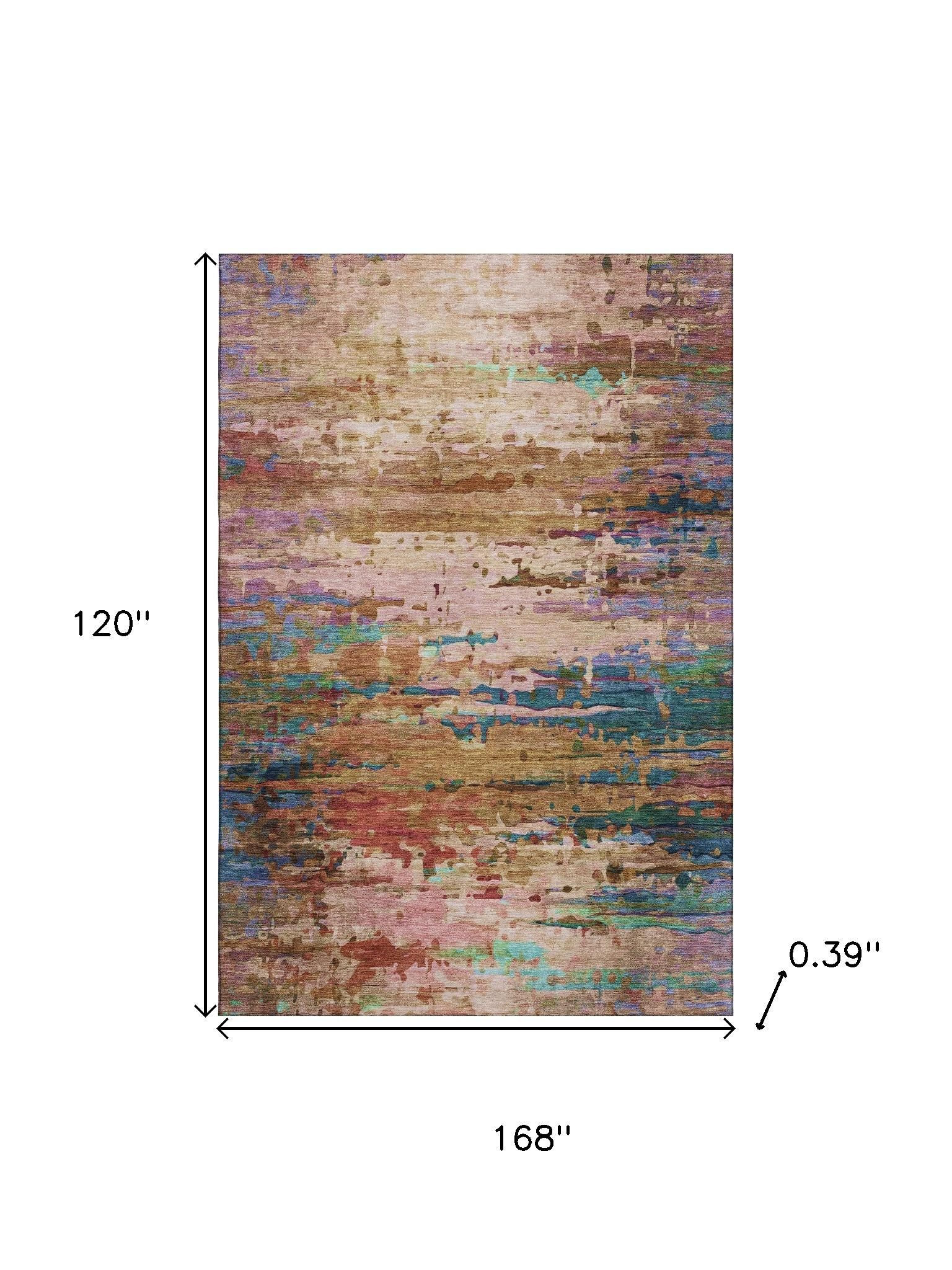 Set an inviting tone in your space with this 10-foot x 14-foot sage and teal abstract washable area rug with uv protection. Ideal for spaces with kids and pets, this rug is stain resistant to help repel dirt and spilled liquids. Built to last, this rug crafted from polyester fibers is known for its durability and long lasting appeal. Rugs are a great way to showcase your style, hide imperfections, warm your home and reduce noise. This larger sized, transitional styled rug is ready to create a focal point or statement piece in your room. 120.00-inch h x 168.00-inch w x 0.39-inch d.
