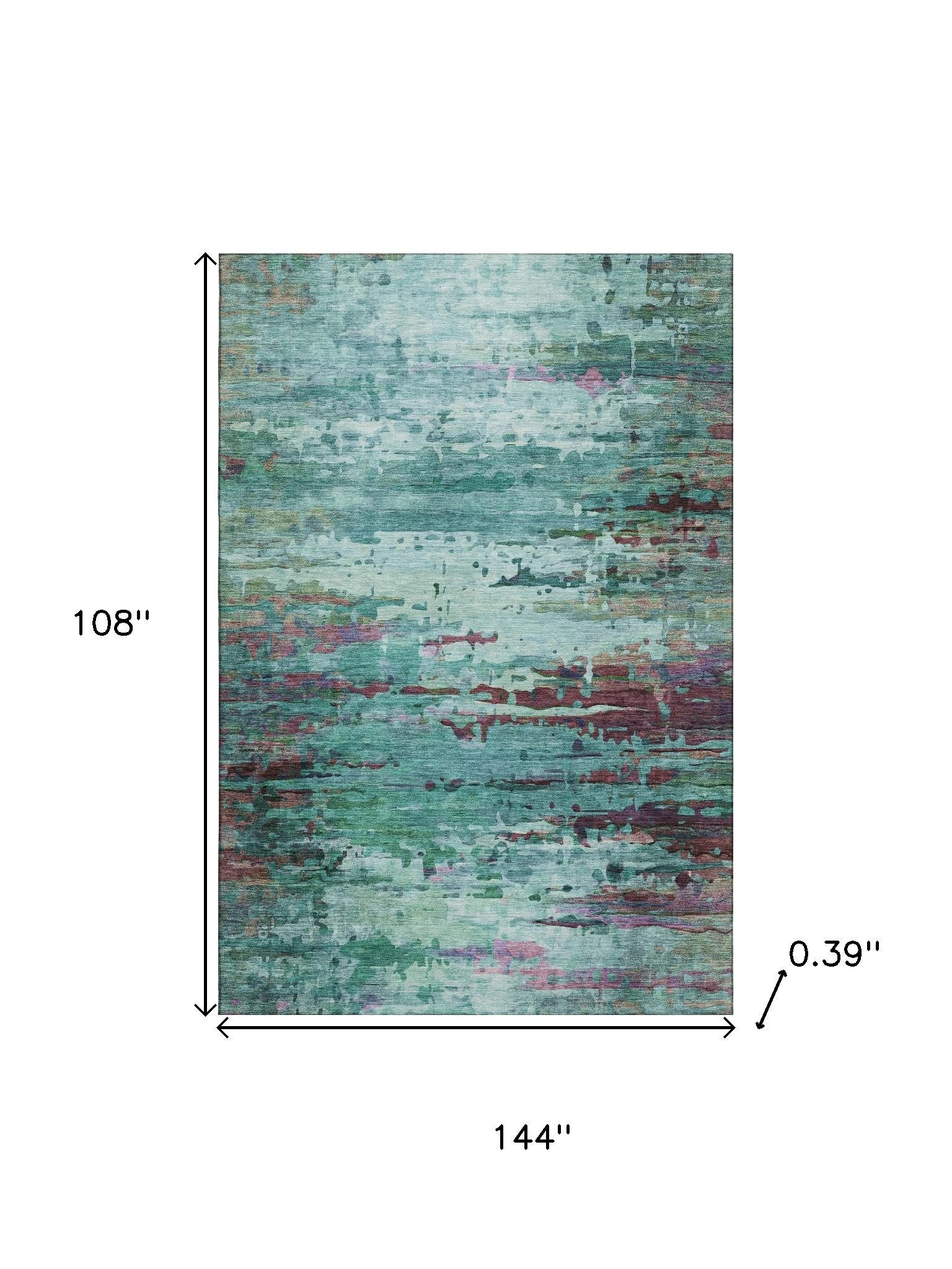 Set an inviting tone in your space with this 9-foot x 12-foot teal and plum abstract washable area rug with uv protection. Ideal for spaces with kids and pets, this rug is stain resistant to help repel dirt and spilled liquids. Built to last, this rug crafted from polyester fibers is known for its durability and long lasting appeal. Rugs are a great way to showcase your style, hide imperfections, warm your home and reduce noise. This larger sized, transitional styled rug is ready to create a focal point or statement piece in your room. 108.00-inch h x 144.00-inch w x 0.39-inch d.