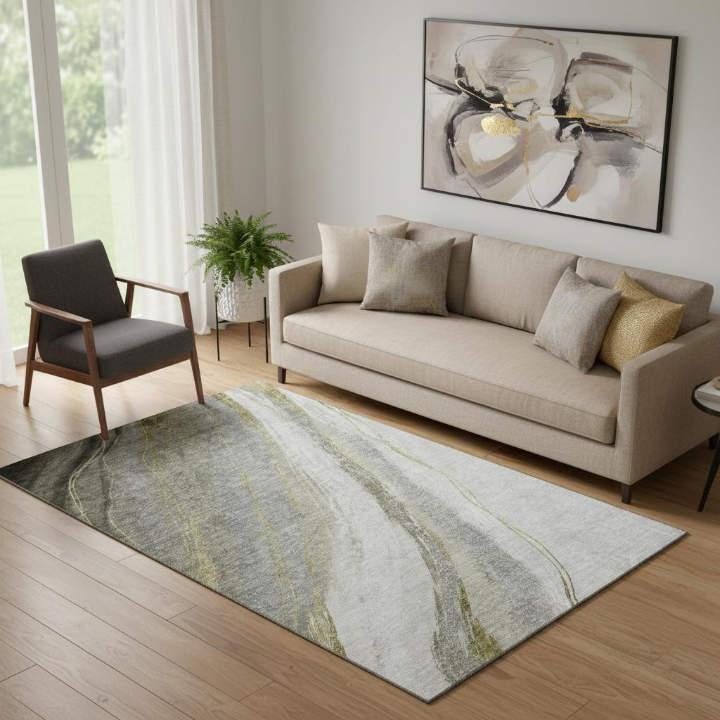 Set an inviting tone in your space with this 5-foot x 8-foot pewter and gray abstract washable area rug with uv protection. Ideal for spaces with kids and pets, this rug is stain resistant to help repel dirt and spilled liquids. Built to last, this rug crafted from polyester fibers is known for its durability and long lasting appeal. Rugs are a great way to showcase your style, hide imperfections, warm your home and reduce noise. This larger sized, transitional styled rug is ready to create a focal point or statement piece in your room. 60.00-inch h x 90.00-inch w x 0.39-inch d.