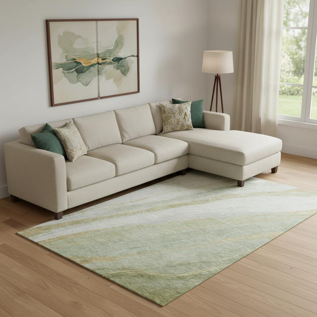 Add great coloration and comfortable texture to your space with this 8-foot x 10-foot sage and copper abstract washable area rug with uv protection. Ideal for spaces with kids and pets, this rug is stain resistant to help repel dirt and spilled liquids. Built to last, this rug crafted from polyester fibers is known for its durability and long lasting appeal. Rugs are a great way to showcase your style, hide imperfections, warm your home and reduce noise. This larger sized, transitional styled rug is ready to create a focal point or statement piece in your room. 96.00-inch h x 120.00-inch w x 0.39-inch d.