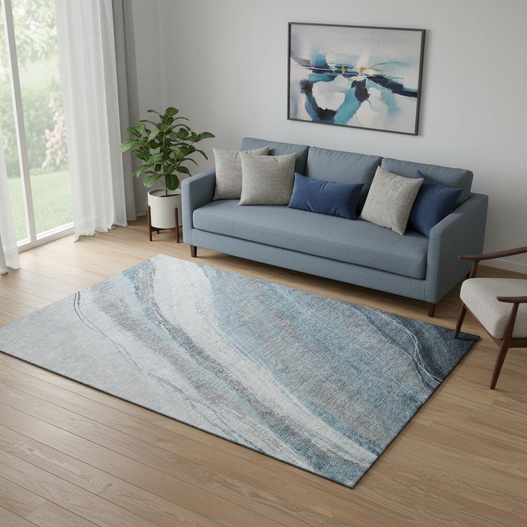 This 5-foot x 8-foot teal and gray abstract washable area rug with uv protection, is a great way to add warmth to a room. Ideal for spaces with kids and pets, this rug is stain resistant to help repel dirt and spilled liquids. Built to last, this rug crafted from polyester fibers is known for its durability and long lasting appeal. Rugs are a great way to showcase your style, hide imperfections, warm your home and reduce noise. This larger sized, transitional styled rug is ready to create a focal point or statement piece in your room. 60.00-inch h x 90.00-inch w x 0.39-inch d.