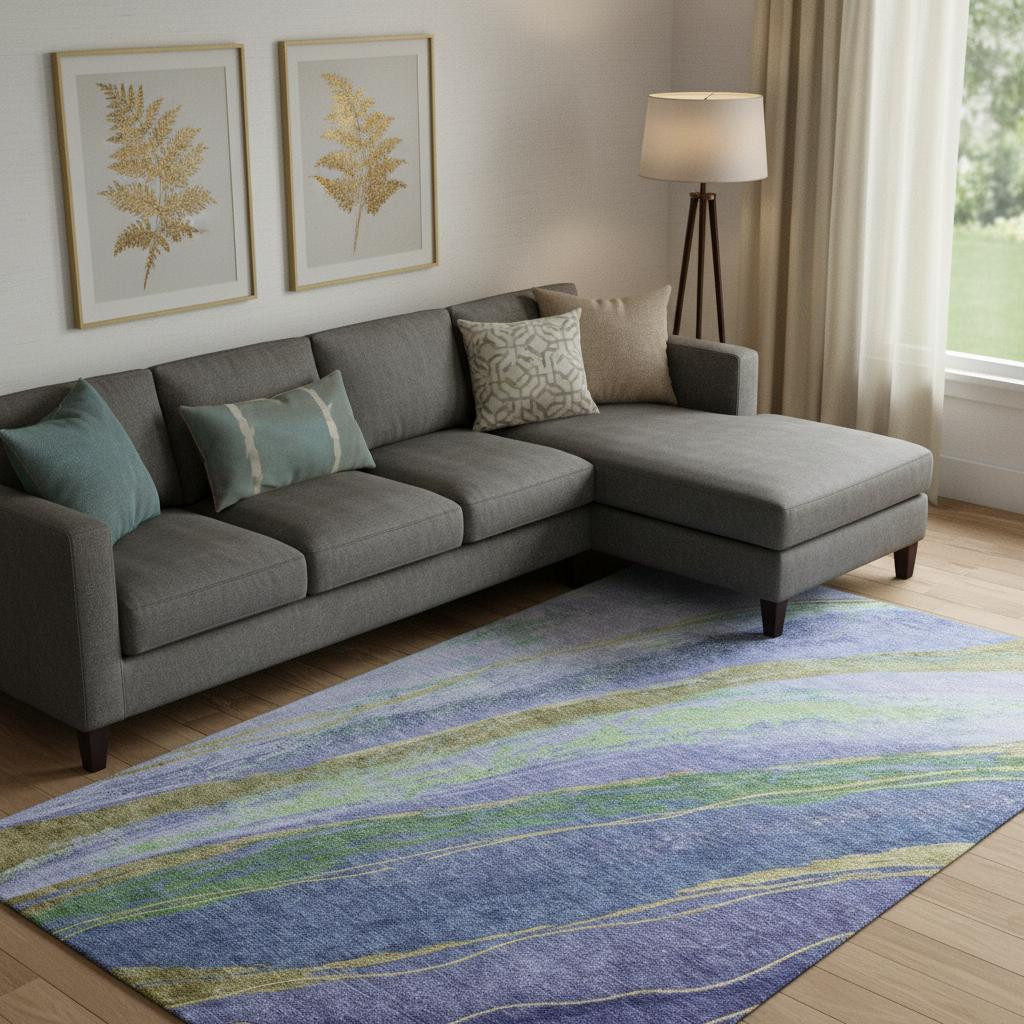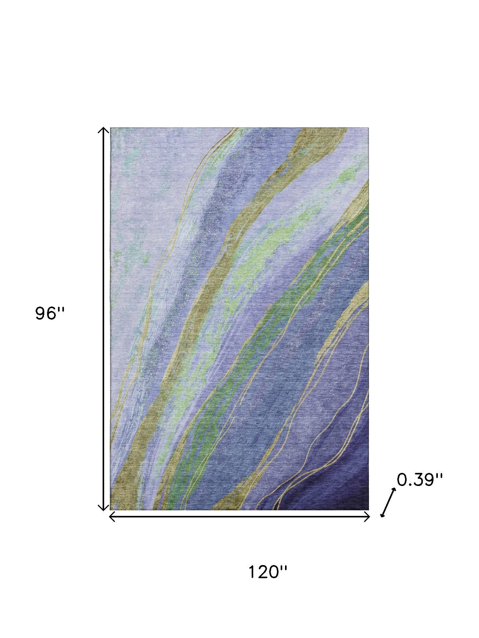 This 8-foot x 10-foot purple and green abstract washable area rug with uv protection, is a great way to add warmth to a room. Ideal for spaces with kids and pets, this rug is stain resistant to help repel dirt and spilled liquids. Built to last, this rug crafted from polyester fibers is known for its durability and long lasting appeal. Rugs are a great way to showcase your style, hide imperfections, warm your home and reduce noise. This larger sized, transitional styled rug is ready to create a focal point or statement piece in your room. 96.00-inch h x 120.00-inch w x 0.39-inch d.