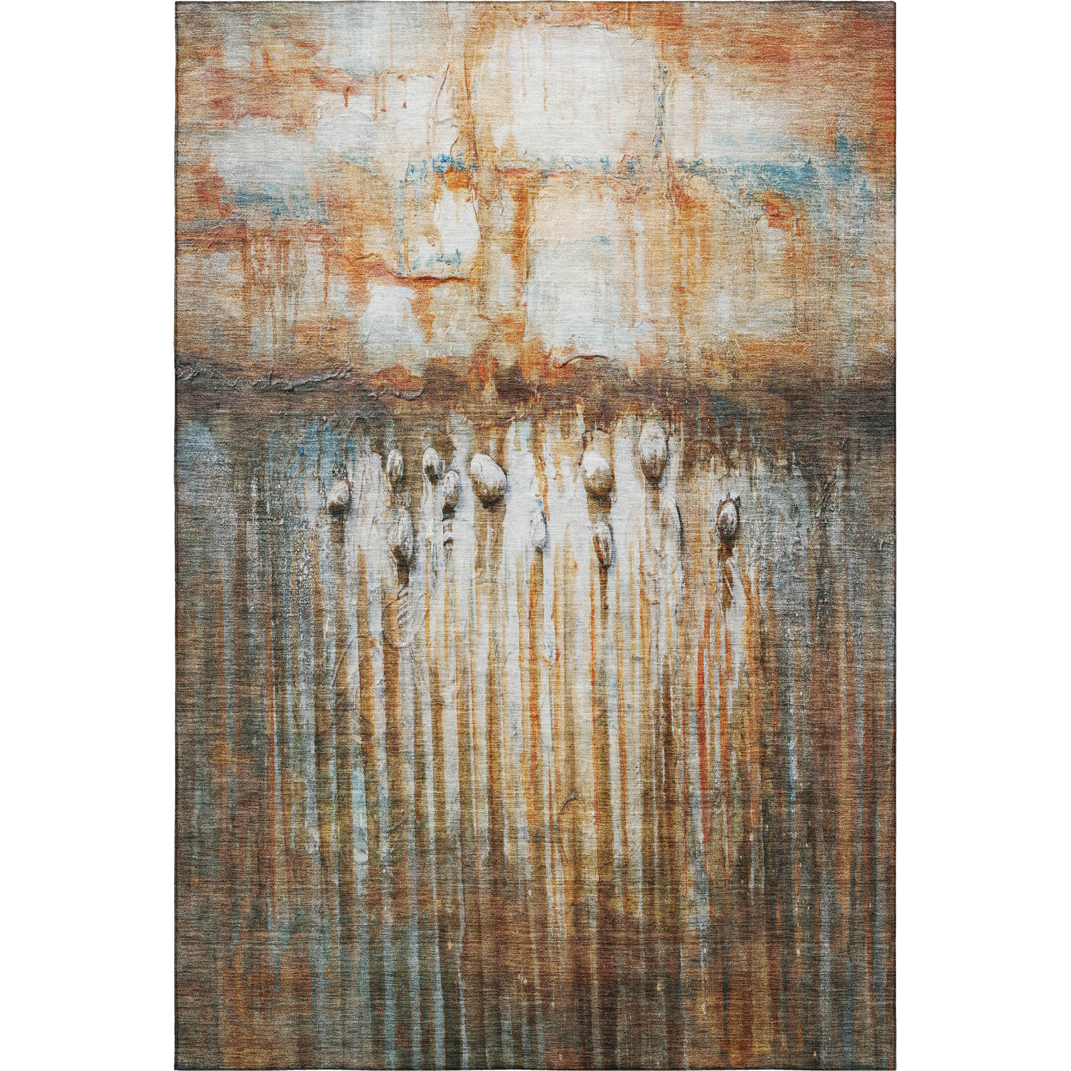 Add great coloration and comfortable texture to your space with this 8-foot x 10-foot rust and gray abstract washable area rug with uv protection. Ideal for spaces with kids and pets, this rug is stain resistant to help repel dirt and spilled liquids. Built to last, this rug crafted from polyester fibers is known for its durability and long lasting appeal. Rugs are a great way to showcase your style, hide imperfections, warm your home and reduce noise. This larger sized, transitional styled rug is ready to create a focal point or statement piece in your room. 96.00-inch h x 120.00-inch w x 0.39-inch d.