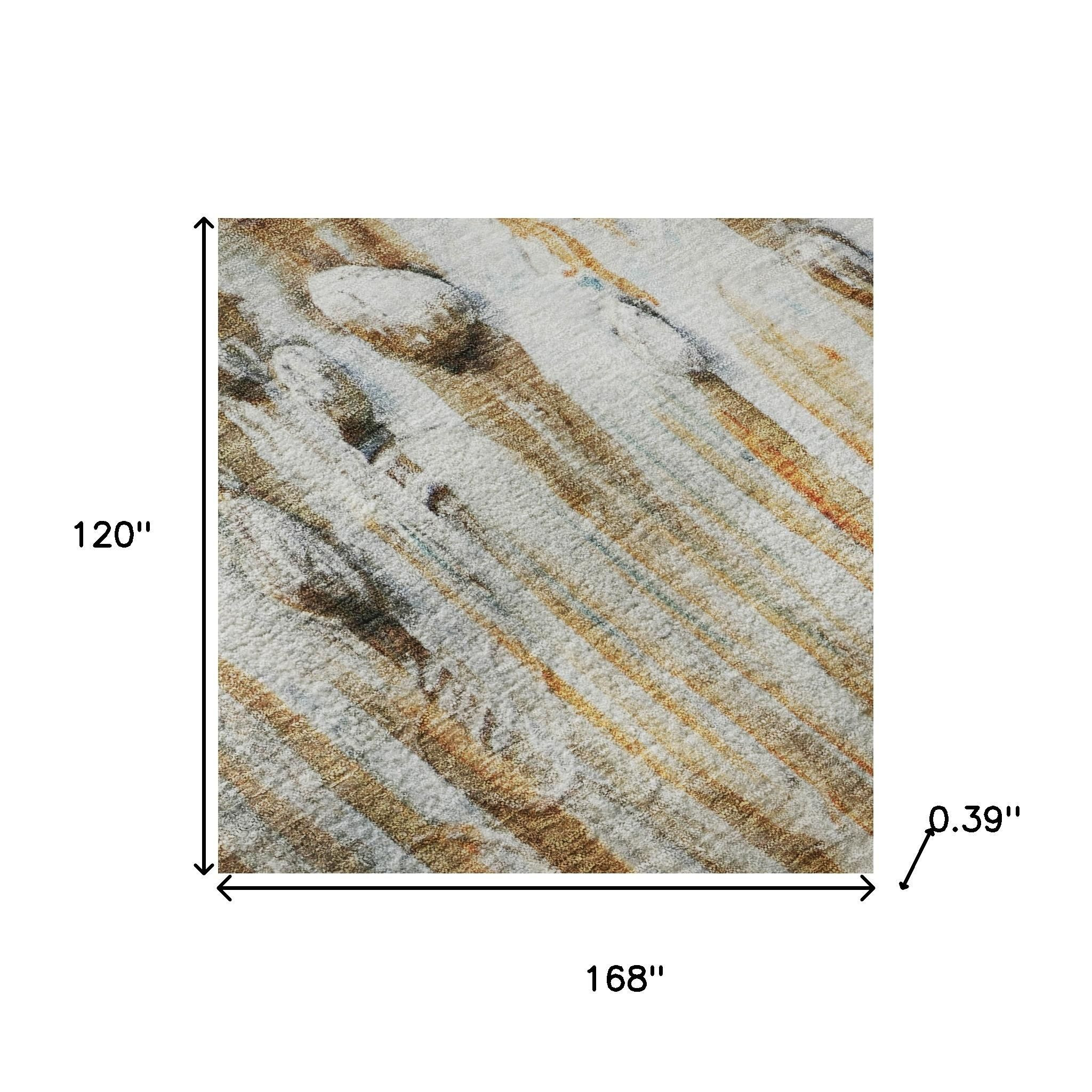 This 10-foot x 14-foot rust and gray abstract washable area rug with uv protection, is a great way to add warmth to a room. Ideal for spaces with kids and pets, this rug is stain resistant to help repel dirt and spilled liquids. Built to last, this rug crafted from polyester fibers is known for its durability and long lasting appeal. Rugs are a great way to showcase your style, hide imperfections, warm your home and reduce noise. This larger sized, transitional styled rug is ready to create a focal point or statement piece in your room. 120.00-inch h x 168.00-inch w x 0.39-inch d.