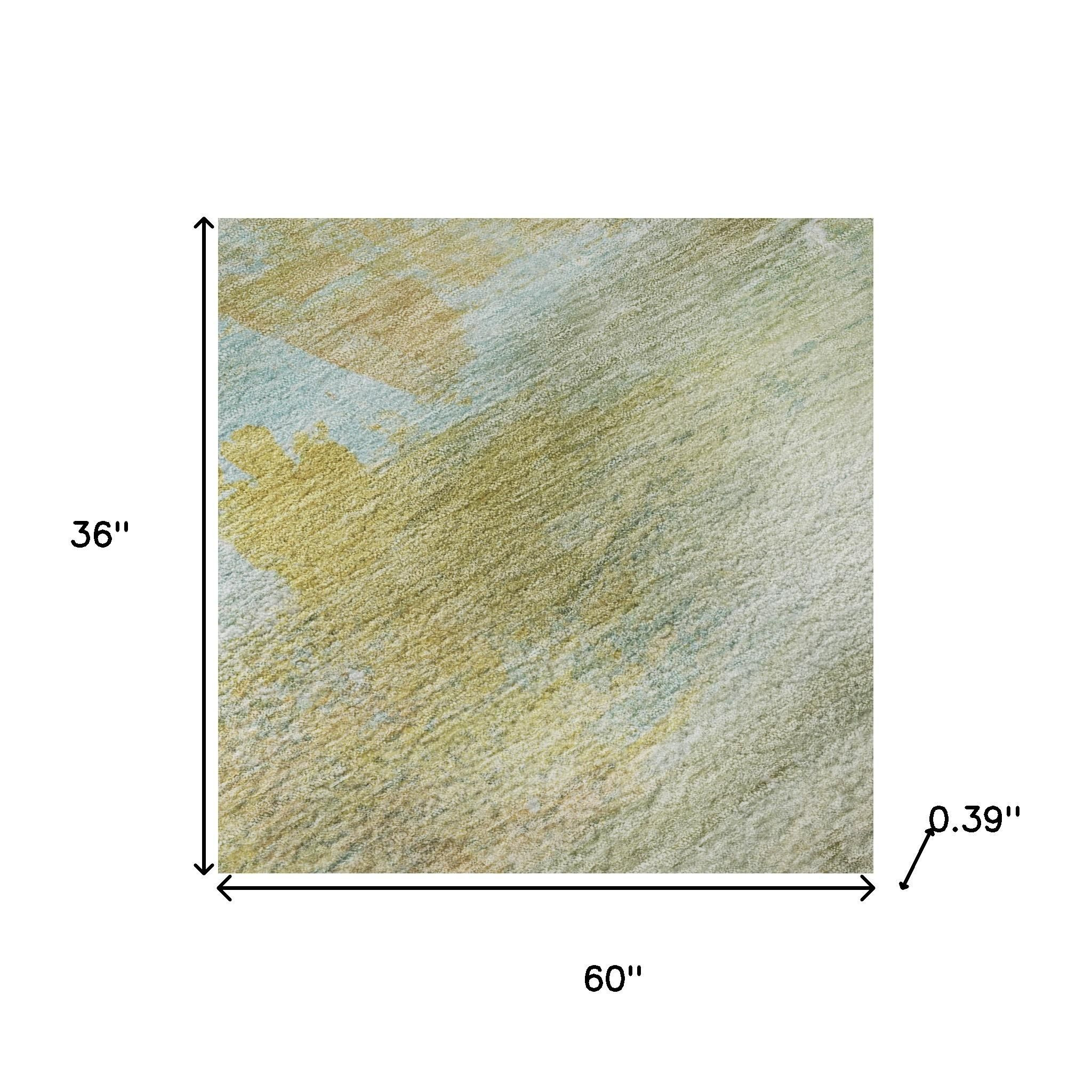 This 3-foot x 5-foot beige and ivory abstract washable area rug with uv protection, is a great way to add warmth to a room. Ideal for spaces with kids and pets, this rug is stain resistant to help repel dirt and spilled liquids. Built to last, this rug crafted from polyester fibers is known for its durability and long lasting appeal. Rugs are a great way to showcase your style, hide imperfections, warm your home and reduce noise. This smaller sized, transitional styled rug is just what you need for your walkway, bedside, in front of door, cabinet, refrigerator, or chair. 36.00-inch h x 60.00-inch w x 0.39-inch d.