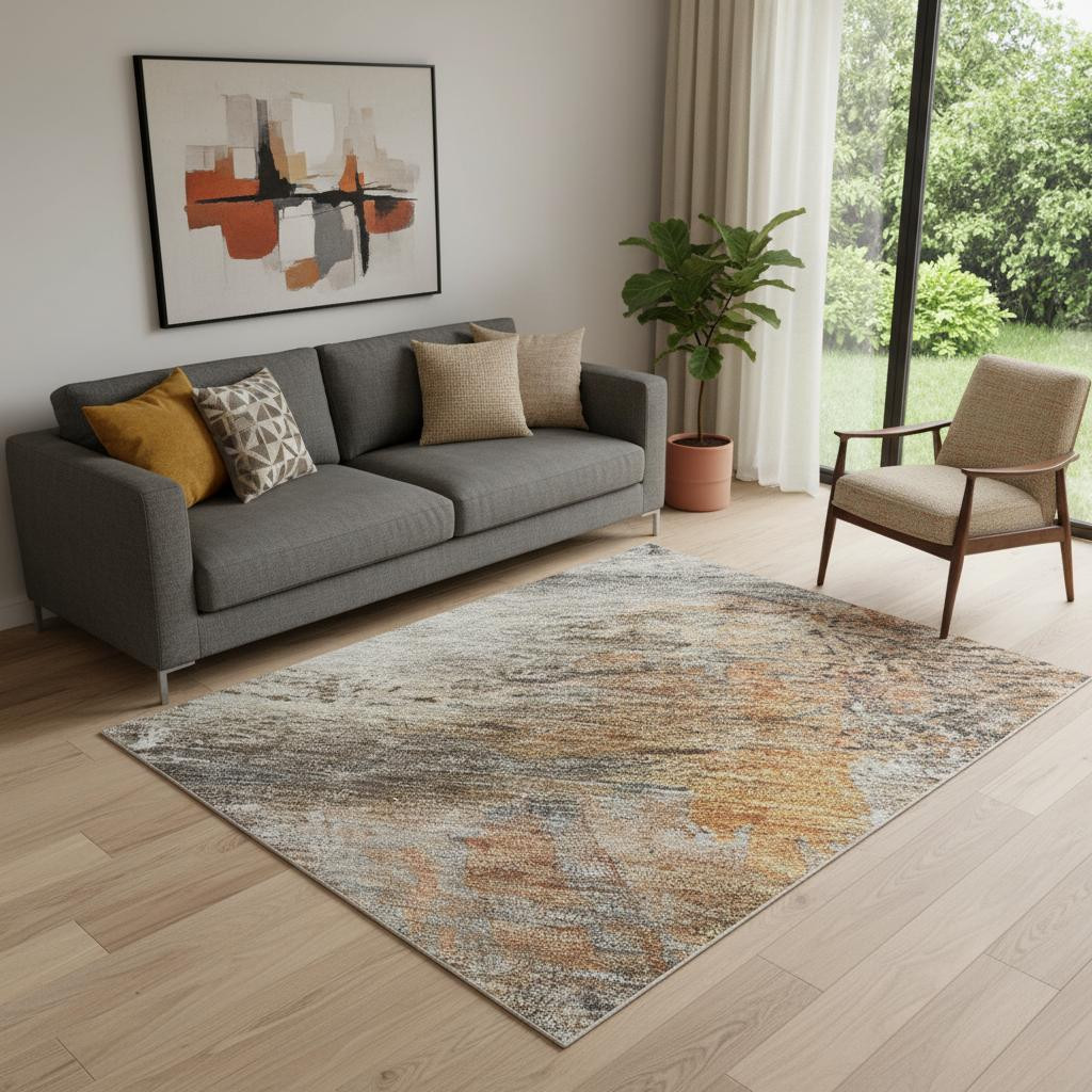 Add some artistry to your room with this 5-foot x 8-foot brown and gray abstract washable area rug with uv protection. Ideal for spaces with kids and pets, this rug is stain resistant to help repel dirt and spilled liquids. Built to last, this rug crafted from polyester fibers is known for its durability and long lasting appeal. Rugs are a great way to showcase your style, hide imperfections, warm your home and reduce noise. This larger sized, transitional styled rug is ready to create a focal point or statement piece in your room. 60.00-inch h x 90.00-inch w x 0.39-inch d.