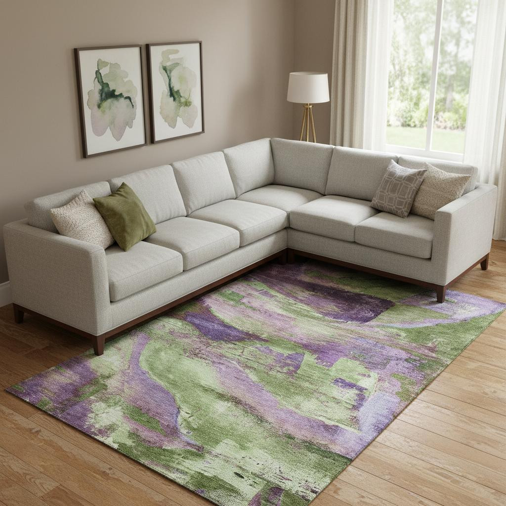 Add great coloration and comfortable texture to your space with this 10-foot x 14-foot purple and green abstract washable area rug with uv protection. Ideal for spaces with kids and pets, this rug is stain resistant to help repel dirt and spilled liquids. Built to last, this rug crafted from polyester fibers is known for its durability and long lasting appeal. Rugs are a great way to showcase your style, hide imperfections, warm your home and reduce noise. This larger sized, transitional styled rug is ready to create a focal point or statement piece in your room. 120.00-inch h x 168.00-inch w x 0.39-inch d.