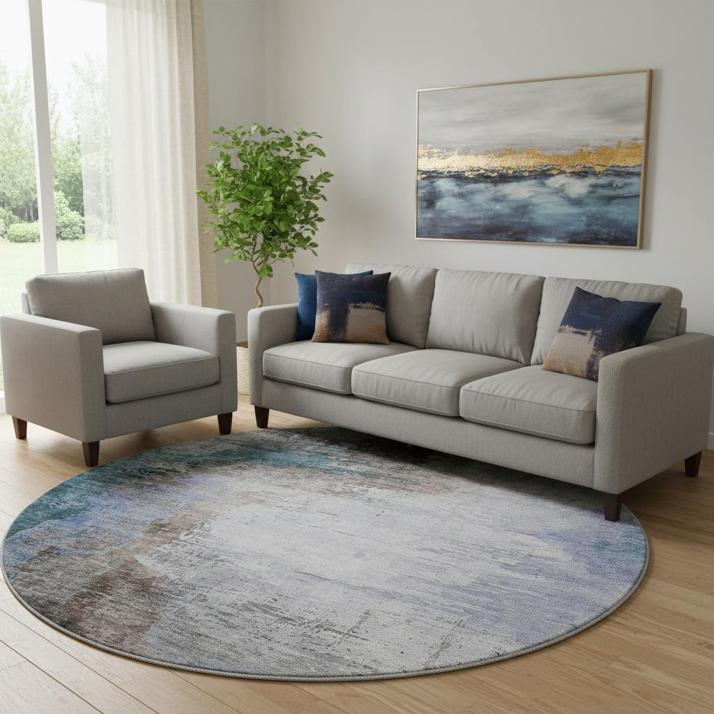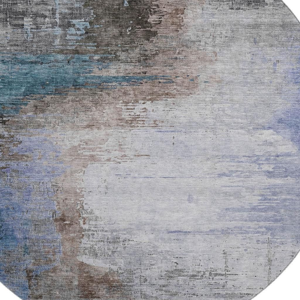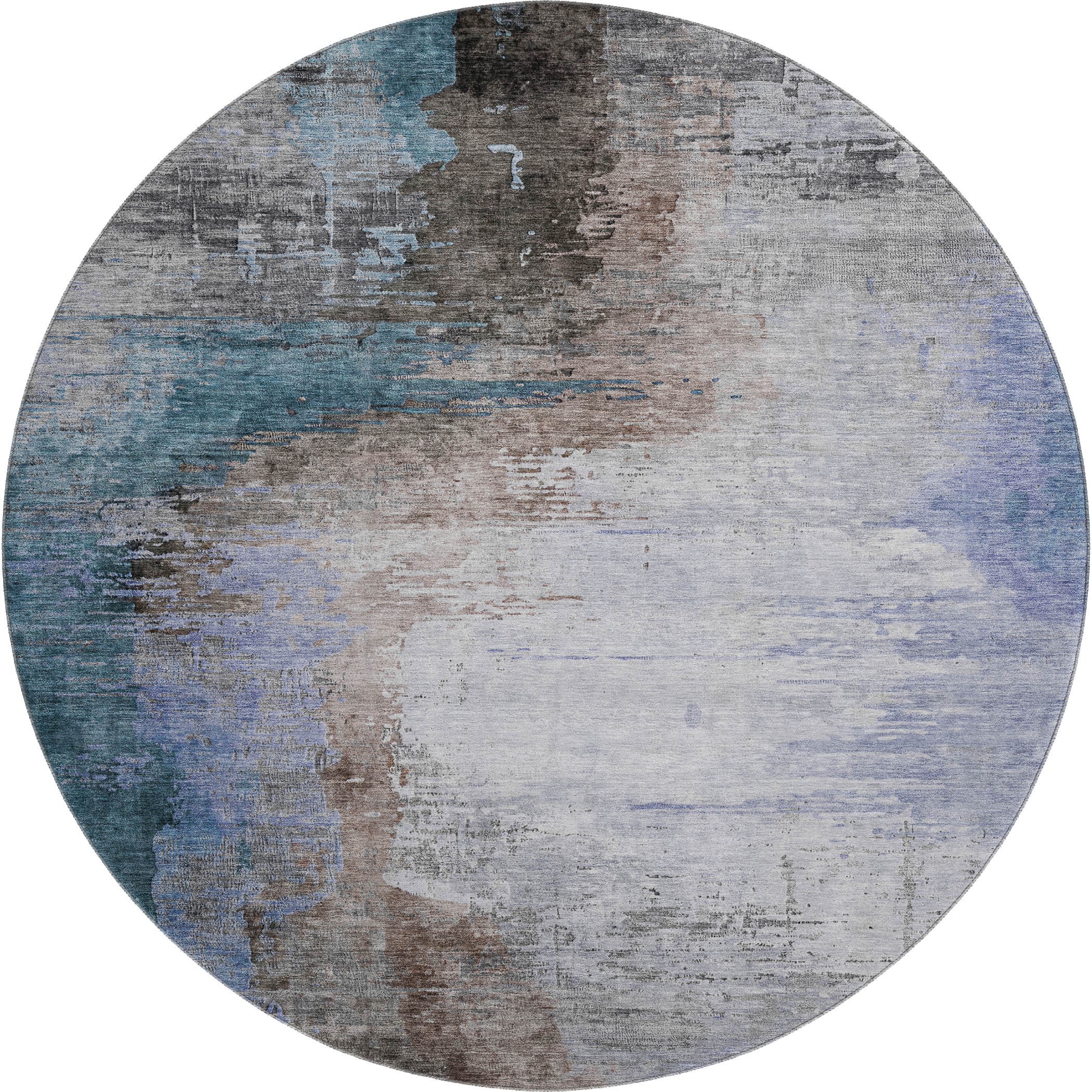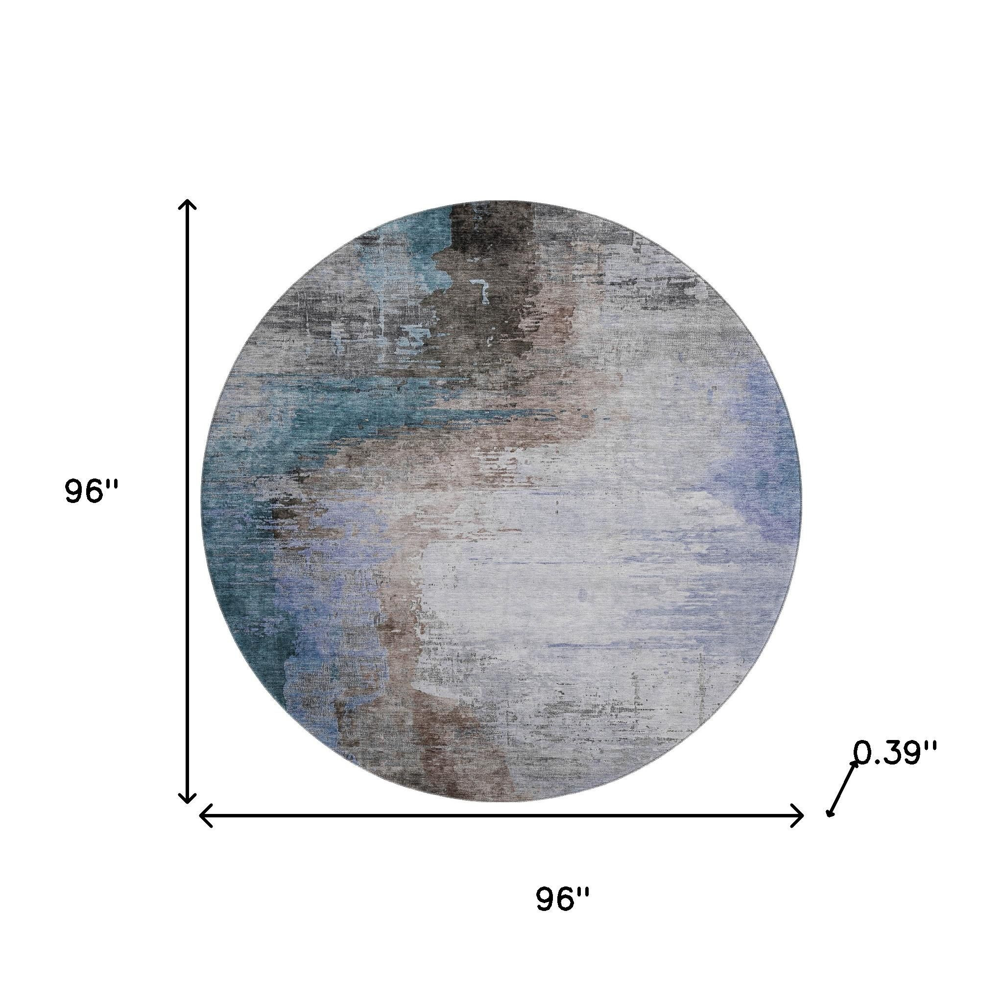 Add great coloration and comfortable texture to your space with this 8-foot brown and blue abstract washable round rug with uv protection. Ideal for spaces with kids and pets, this rug is stain resistant to help repel dirt and spilled liquids. Built to last, this rug crafted from polyester fibers is known for its durability and long lasting appeal. Rugs are a great way to showcase your style, hide imperfections, warm your home and reduce noise. This larger sized, transitional styled rug is ready to create a focal point or statement piece in your room. 96.00-inch h x 96.00-inch w x 0.39-inch d.