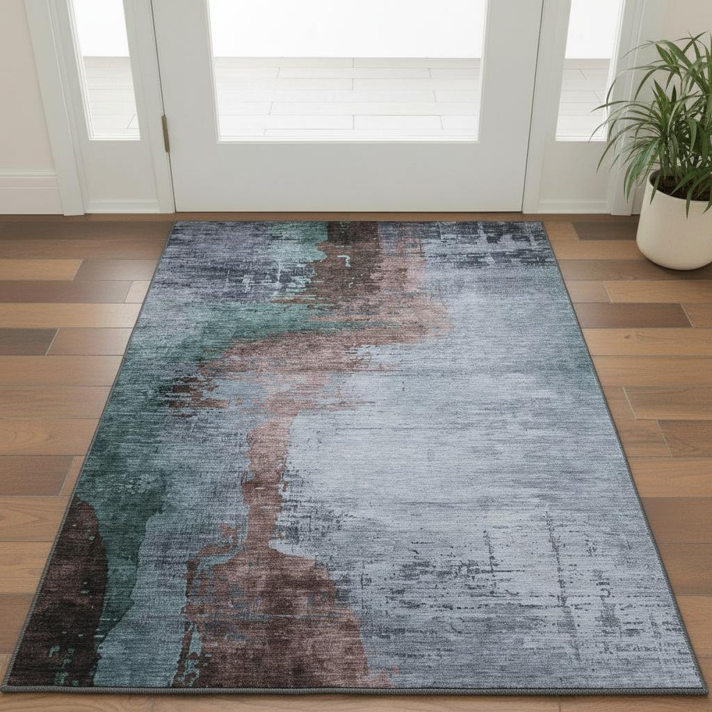 This 3-foot x 5-foot blue and brown abstract washable area rug with uv protection, is a great way to add warmth to a room. Ideal for spaces with kids and pets, this rug is stain resistant to help repel dirt and spilled liquids. Built to last, this rug crafted from polyester fibers is known for its durability and long lasting appeal. Rugs are a great way to showcase your style, hide imperfections, warm your home and reduce noise. This smaller sized, transitional styled rug is just what you need for your walkway, bedside, in front of door, cabinet, refrigerator, or chair. 36.00-inch h x 60.00-inch w x 0.39-inch d.