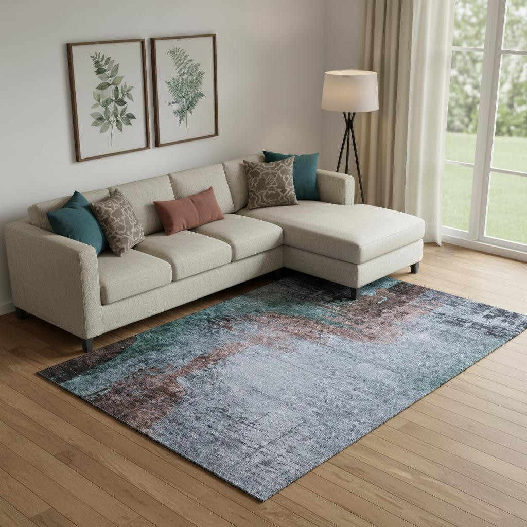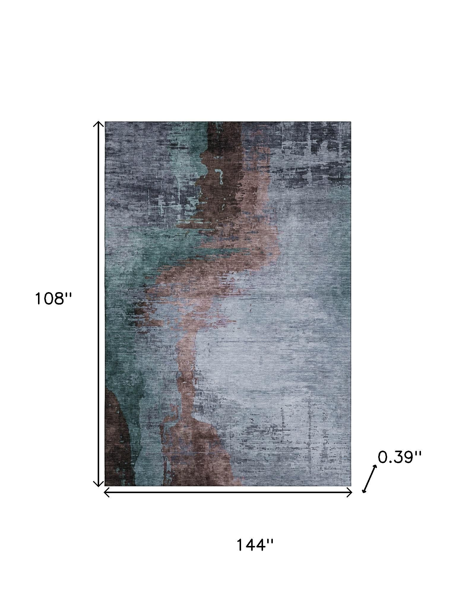 This 9-foot x 12-foot blue and brown abstract washable area rug with uv protection, is a great way to add warmth to a room. Ideal for spaces with kids and pets, this rug is stain resistant to help repel dirt and spilled liquids. Built to last, this rug crafted from polyester fibers is known for its durability and long lasting appeal. Rugs are a great way to showcase your style, hide imperfections, warm your home and reduce noise. This larger sized, transitional styled rug is ready to create a focal point or statement piece in your room. 108.00-inch h x 144.00-inch w x 0.39-inch d.
