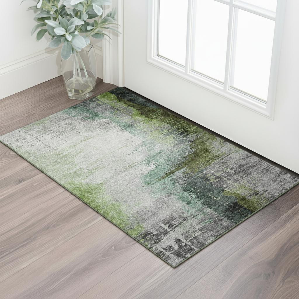 Set an inviting tone in your space with this 3-foot x 5-foot green and gray abstract washable area rug with uv protection. Ideal for spaces with kids and pets, this rug is stain resistant to help repel dirt and spilled liquids. Built to last, this rug crafted from polyester fibers is known for its durability and long lasting appeal. Rugs are a great way to showcase your style, hide imperfections, warm your home and reduce noise. This smaller sized, transitional styled rug is just what you need for your walkway, bedside, in front of door, cabinet, refrigerator, or chair. 36.00-inch h x 60.00-inch w x 0.39-inch d.