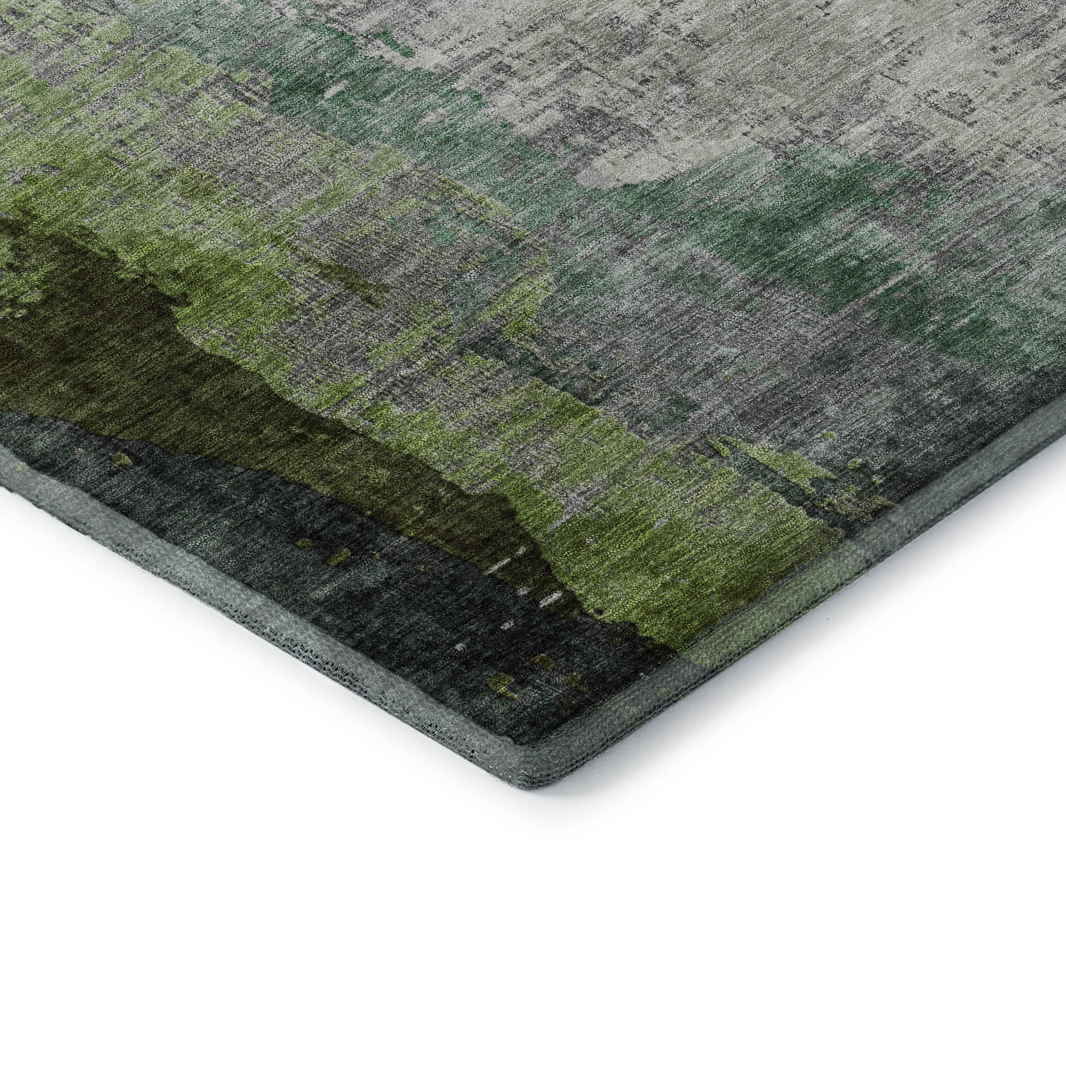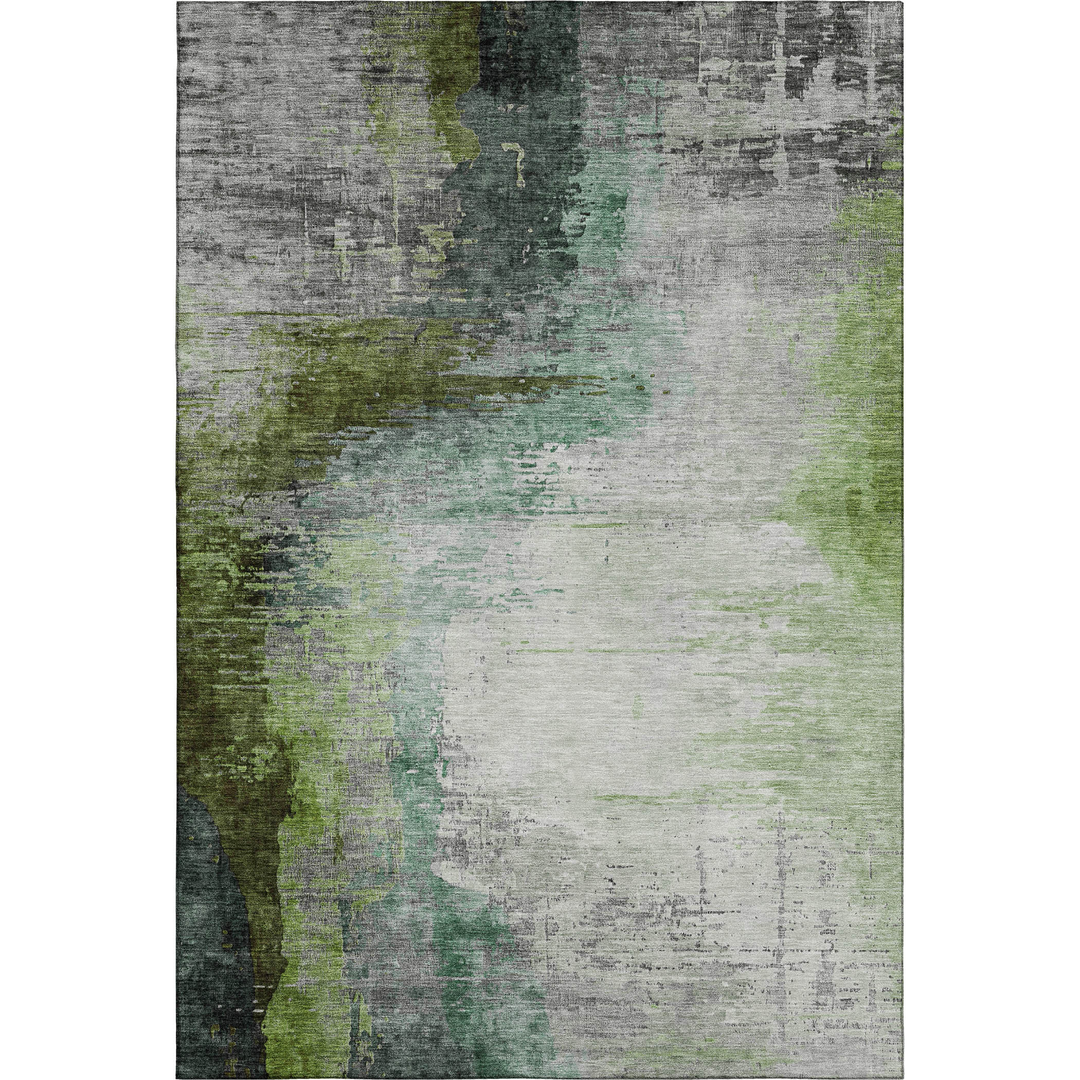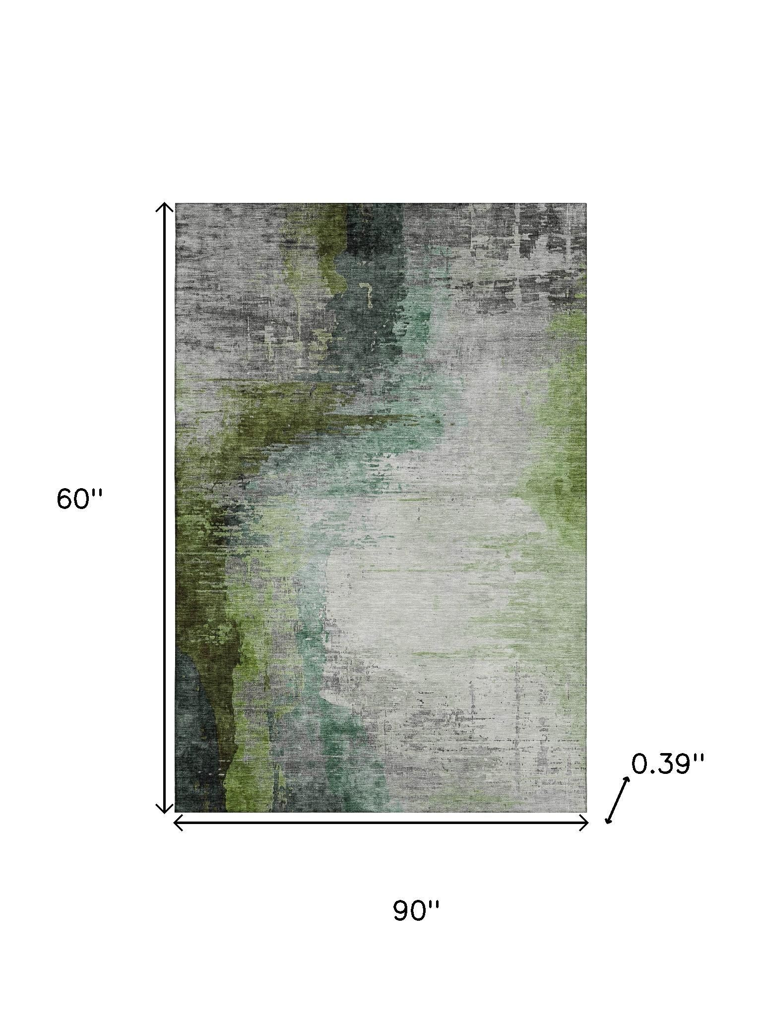Add some artistry to your room with this 5-foot x 8-foot green and gray abstract washable area rug with uv protection. Ideal for spaces with kids and pets, this rug is stain resistant to help repel dirt and spilled liquids. Built to last, this rug crafted from polyester fibers is known for its durability and long lasting appeal. Rugs are a great way to showcase your style, hide imperfections, warm your home and reduce noise. This larger sized, transitional styled rug is ready to create a focal point or statement piece in your room. 60.00-inch h x 90.00-inch w x 0.39-inch d.