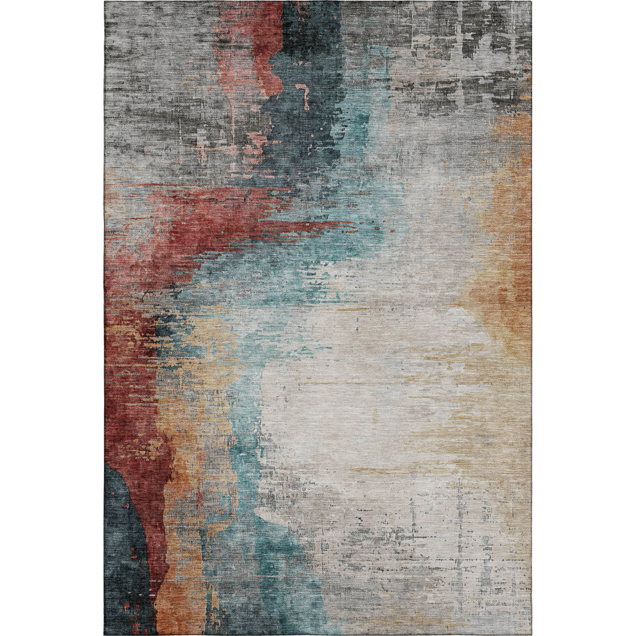 Set an inviting tone in your space with this 8-foot x 10-foot teal and mauve abstract washable area rug with uv protection. Ideal for spaces with kids and pets, this rug is stain resistant to help repel dirt and spilled liquids. Built to last, this rug crafted from polyester fibers is known for its durability and long lasting appeal. Rugs are a great way to showcase your style, hide imperfections, warm your home and reduce noise. This larger sized, transitional styled rug is ready to create a focal point or statement piece in your room. 96.00-inch h x 120.00-inch w x 0.39-inch d.